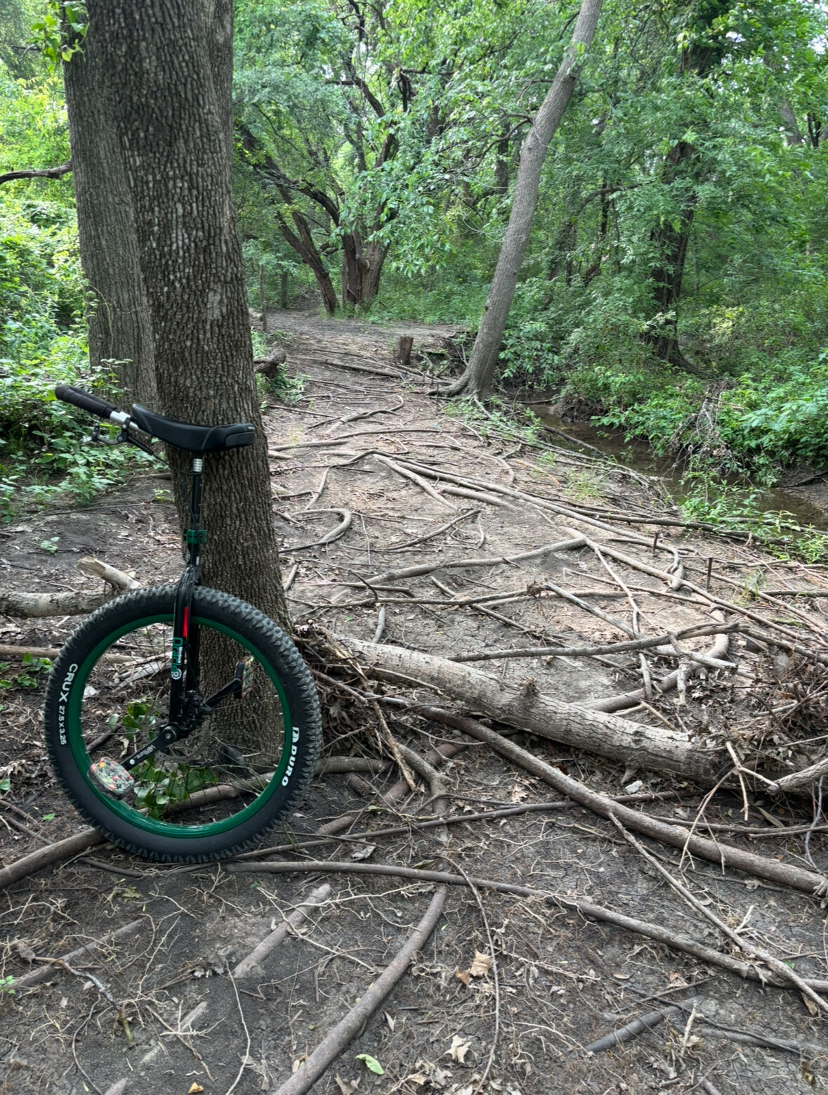 It looks like recent rains & flooding created a new tree trunk feature. The roots were already a challenge. ![]()