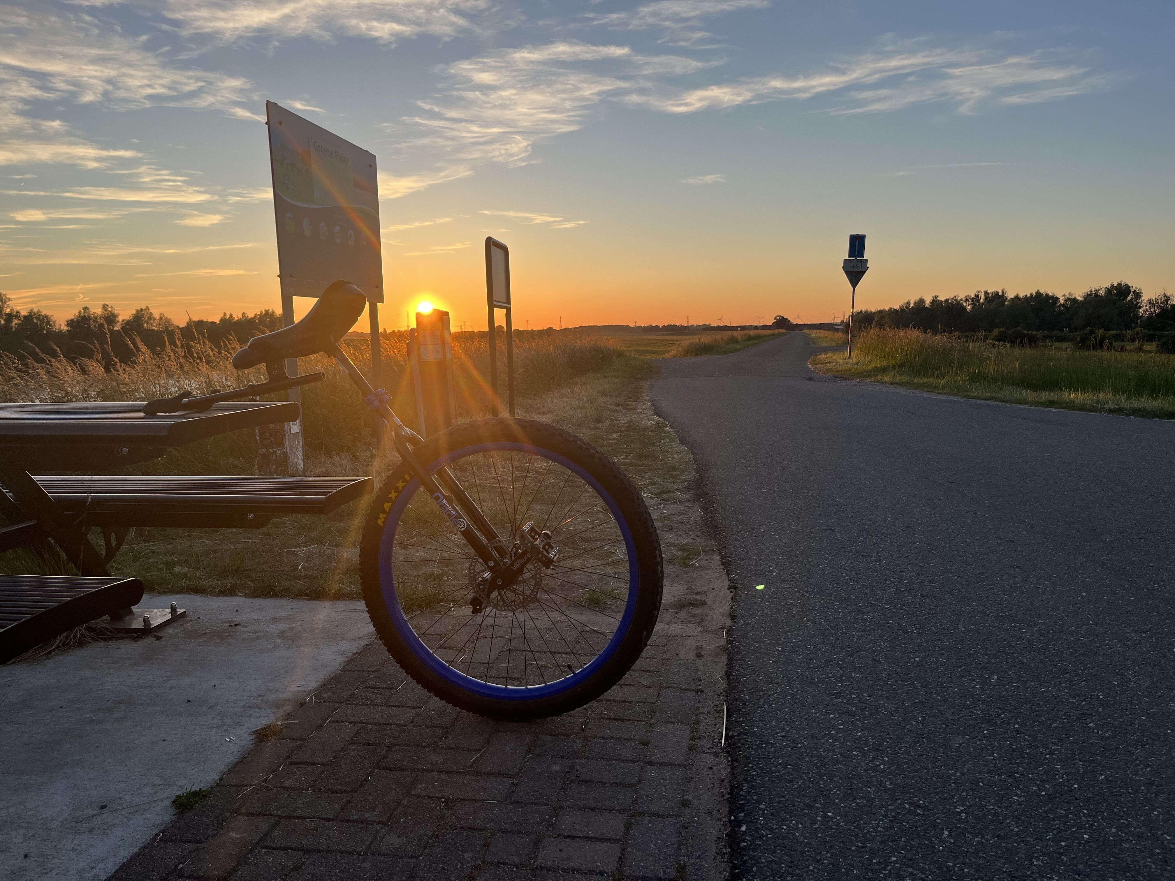 This evening doing 12km on the 29”. The third pic with the sun rays