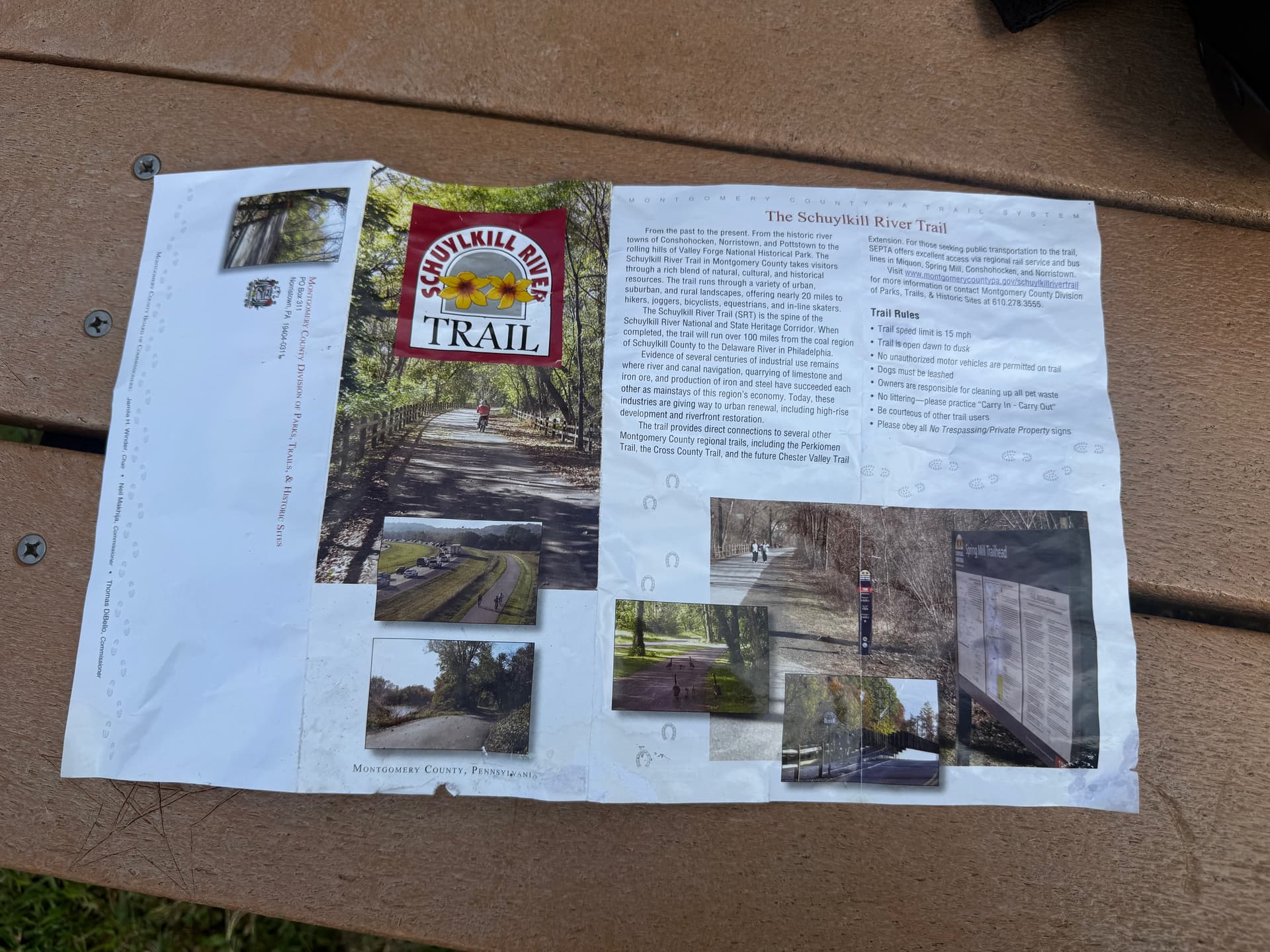 Cleaning up someone else’s trash on the trail, a leaflet for the trail itself that I’ve never seen…