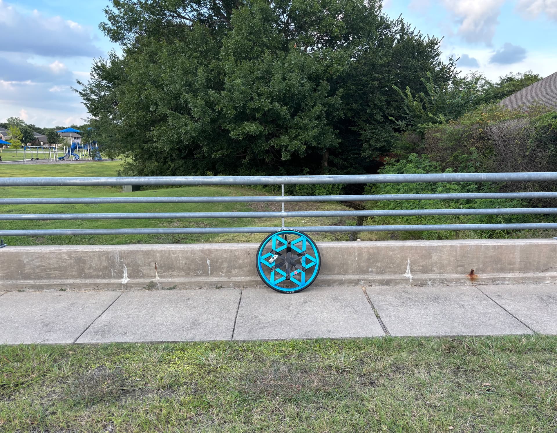 The railing is my new Ultimate Wheel practice location.