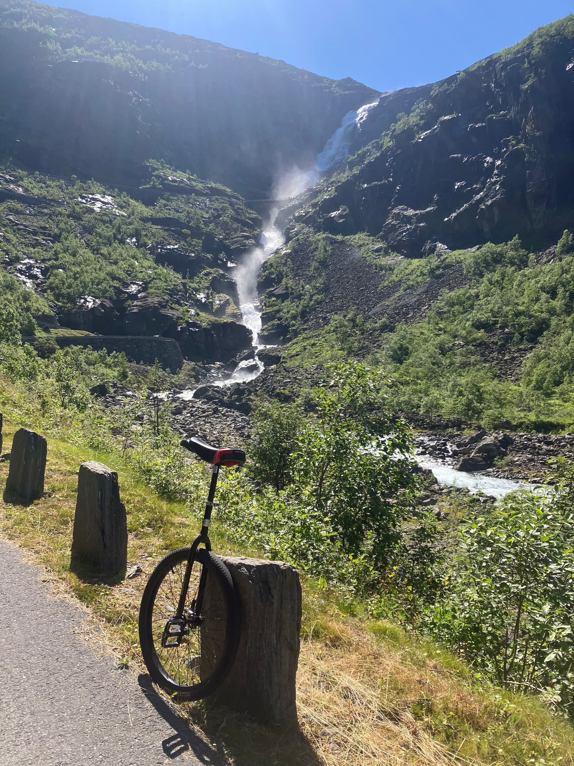 Insane heat with no wind (30 feels like 34c) 44 km total and the main climb was 860 m at ~8%. Unicycle shoes slightly worn. 24"/75 & 100 mm.