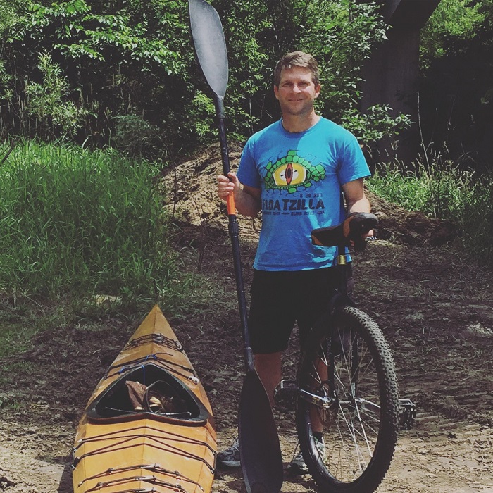 I had a great ride in the 17th annual Timber City Adventure race yesterday. It’s an 8 mile paddle, 14 mile hilly road bike ride followed by a 5K run. I mostly muni, mountain bike and love to paddle, but don’t have a road bike so I decided to Unicycle it. I was 50/50 on my chances to finish. I’ve never ridden more than 12 miles before. I paddled pretty fast, which put me in the front of the group, meaning I got passed by nearly single racer on the cycling part. The bikers were all super awesome with supportive comments as they went by. It was a really great experience crossing the finish line (nearly dead last) with a crowd cheering for the “unicycle guy”. People are great.
