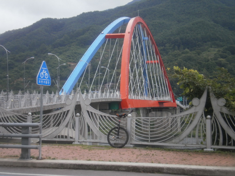 My summer break plan was to try to ride the Seomjingang River bike path which is about 149kms but I planned to do it in short stretches depending on how I went. At the end of June I went over to Guryegu by local bus, about 40 minutes, with the idea of riding from there down to Hadong (about 45kms)and if possible on to GwangYang.(an extra 20kms). This was my first away from home solo ride so was a bit nervous. Everything went OK but by the time I got to the checkpoint at Maehwa village I was more than happy to ride into Hadong and catch a bus home… It was an overcast day and heat wasn’t a problem…