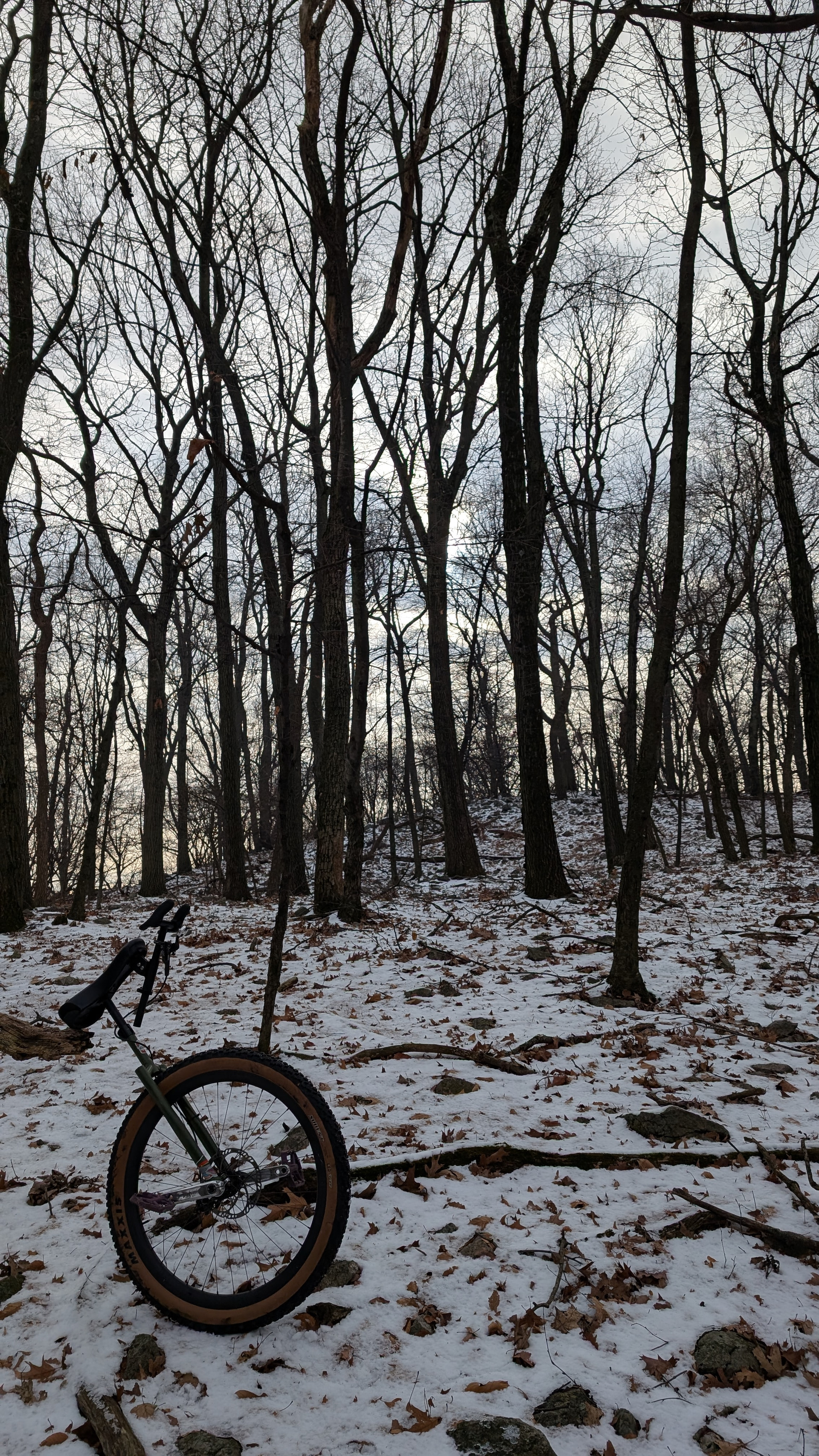 A little snow and ice on the trails today. First ride with the KH handle on. It’ll take a little adjusting and modification to dial it in, but initial impressions are good. The leverage and brake hand position were excellent but the off hand side kept trying to snag my shorts when I was in the techy sections. Not really what you want when negotiating snowy rocks.