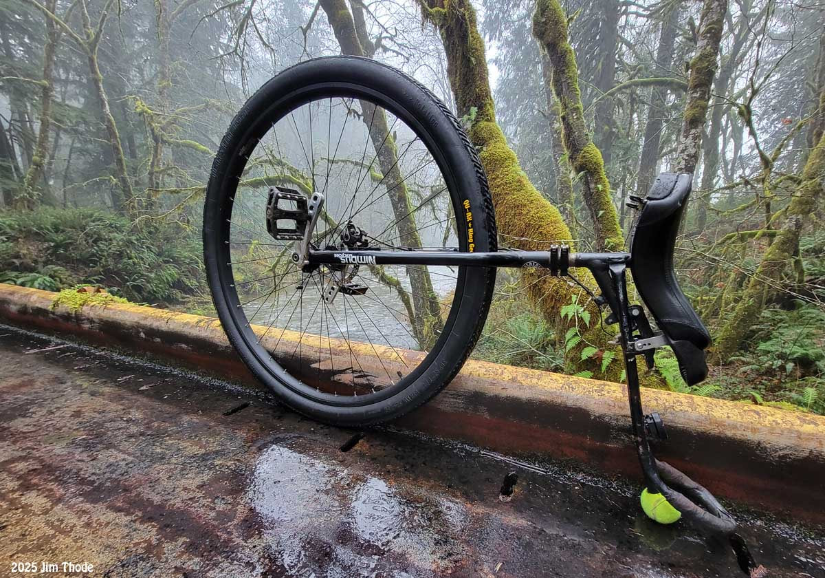I’ve put on a few hundred miles on in the last few weeks in order to meet my annual goal. Here on a wet foggy day: