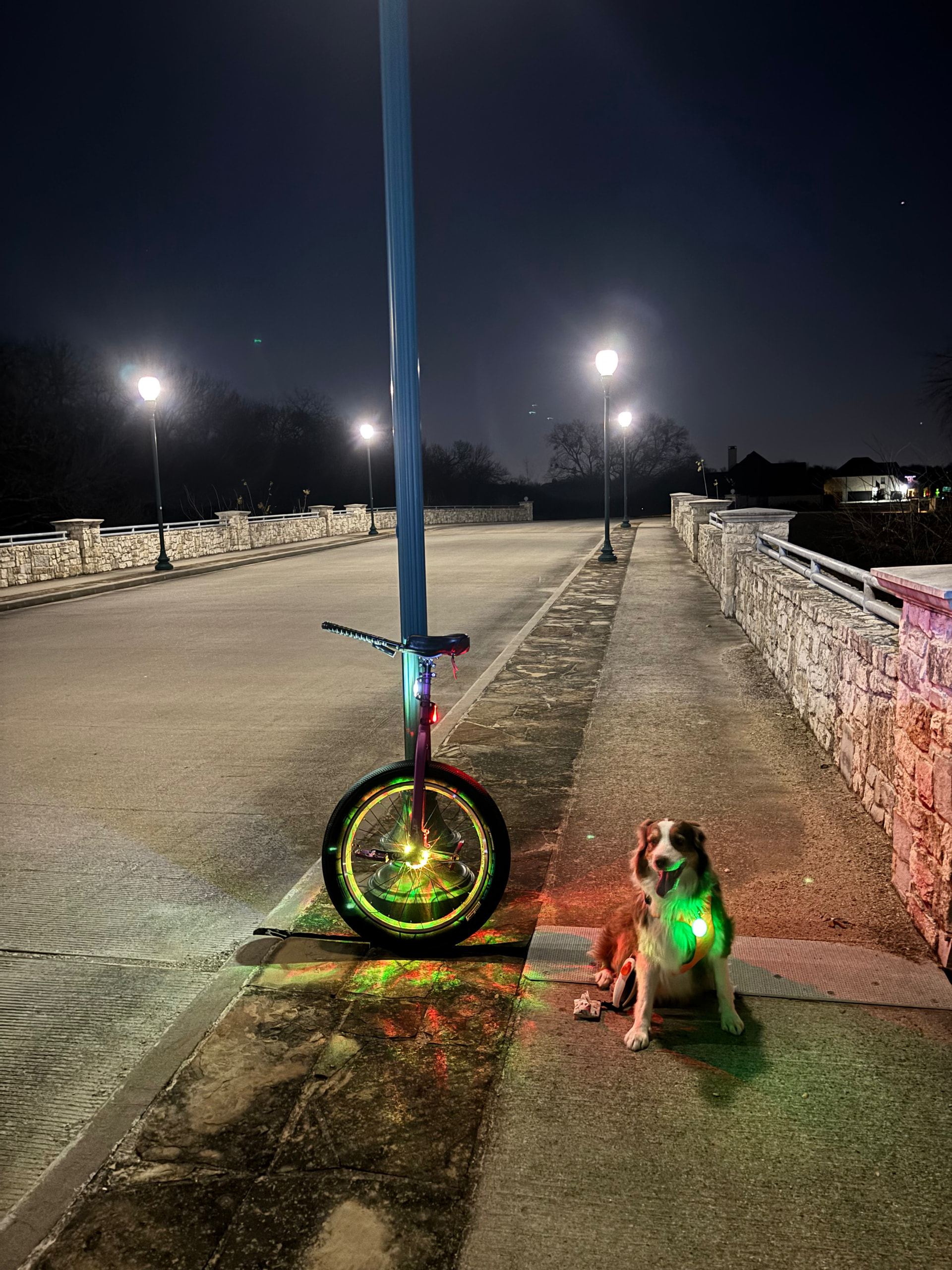 No snow & ice here, but I still had a nice nighttime ride with my most consistent unicycling partner.