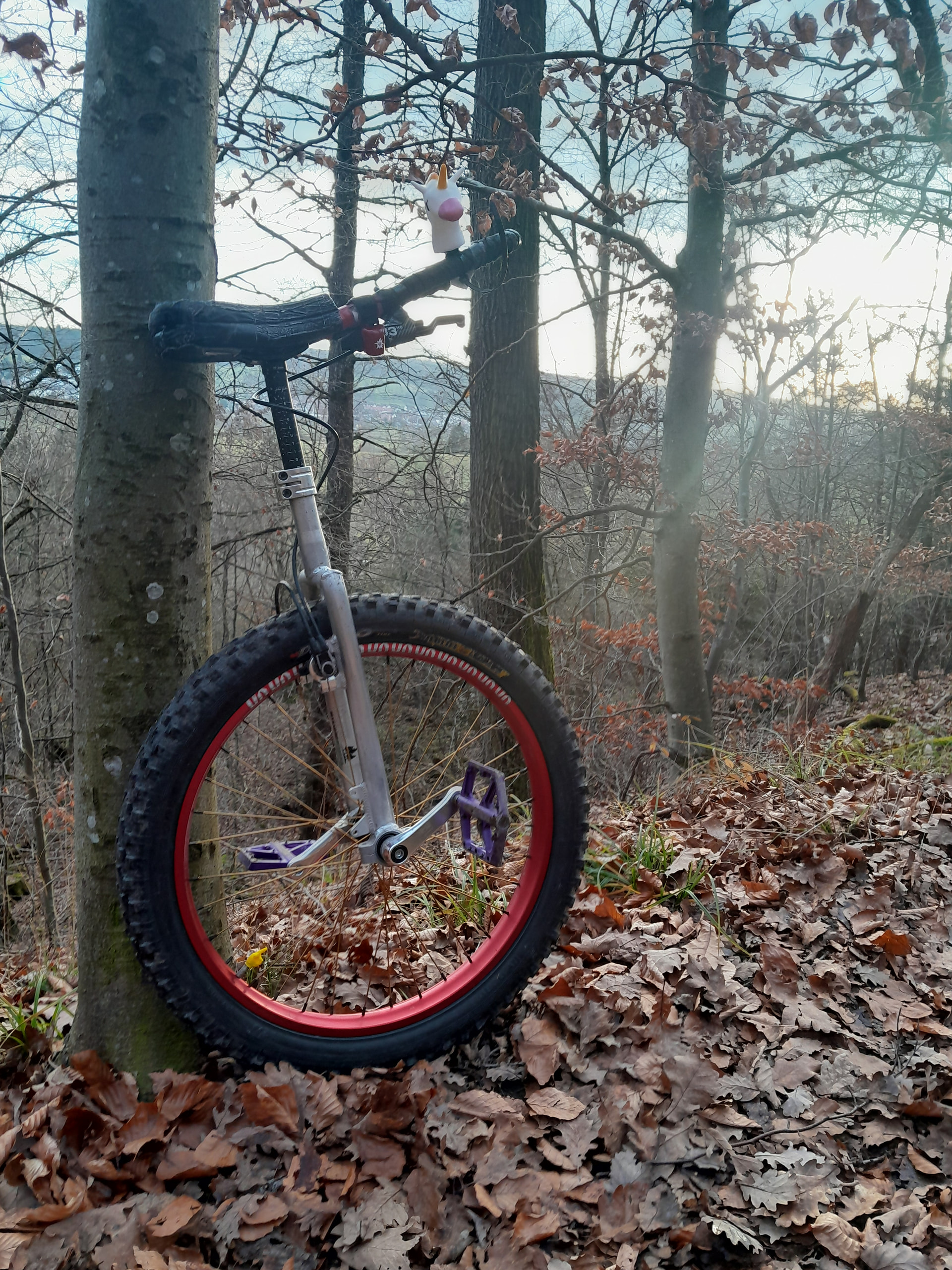 Yesterday I had a great Muni ride with my Unicorn on my 24” Muni. It was very warm, too warm for December. 100 mm Cranks are a bit short for the Muni ride.