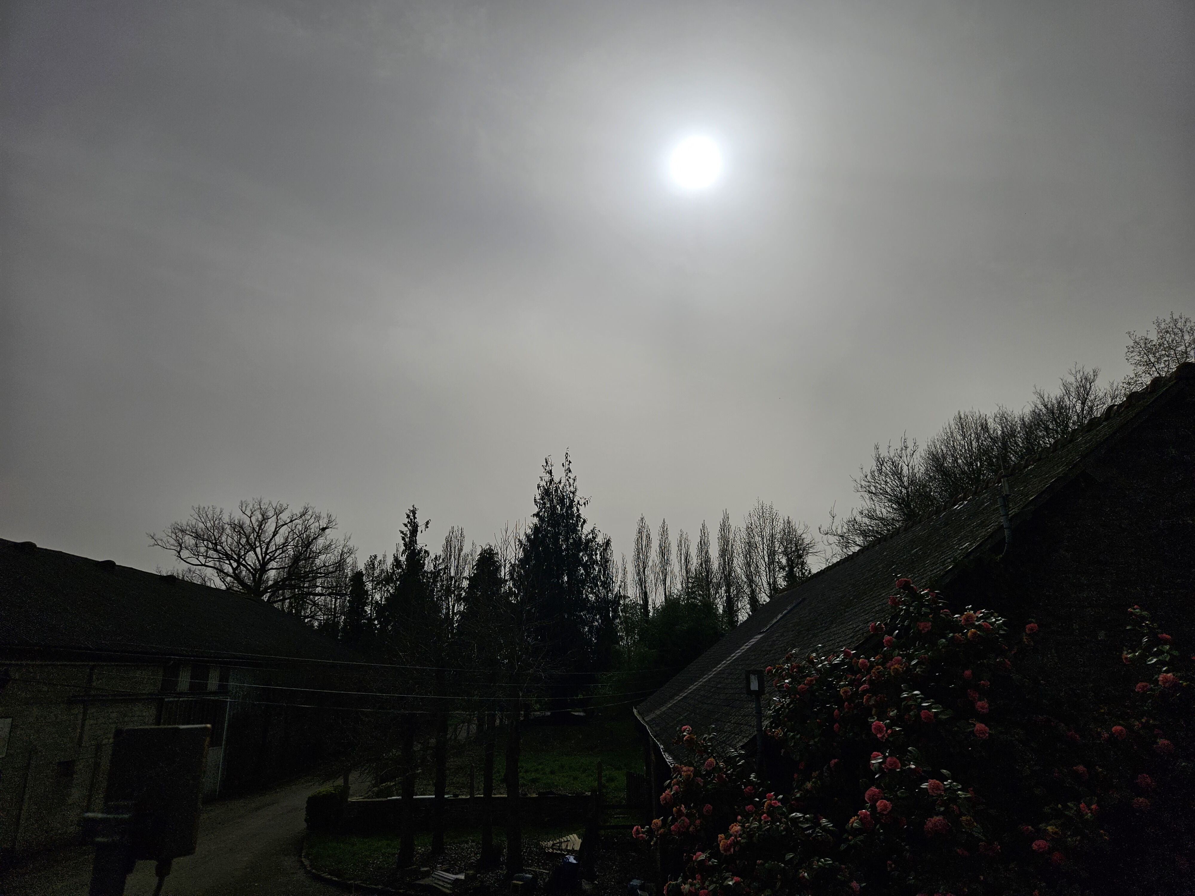 The sky was hazy (and to the temperature colder) because of Sahara’s sand in the atmosphere. It’s supposed to last a few days.