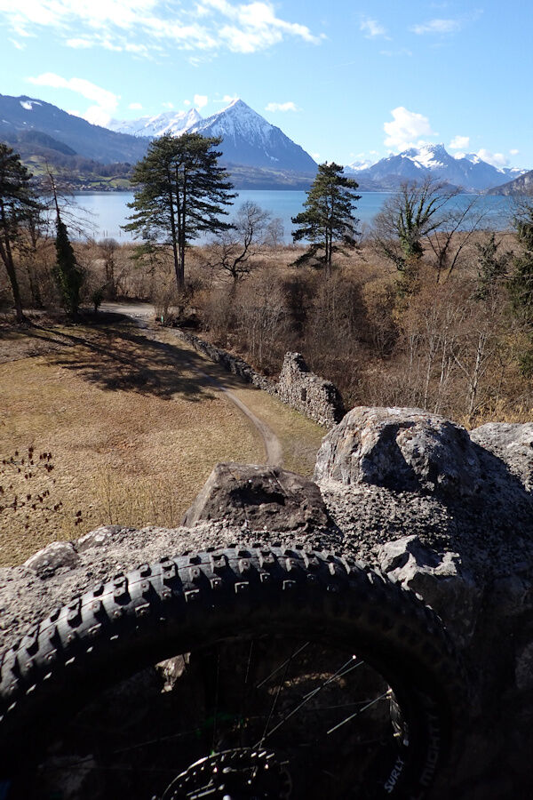 Came past a ruin and climbed the stairs. Nice view of mount Niesen.