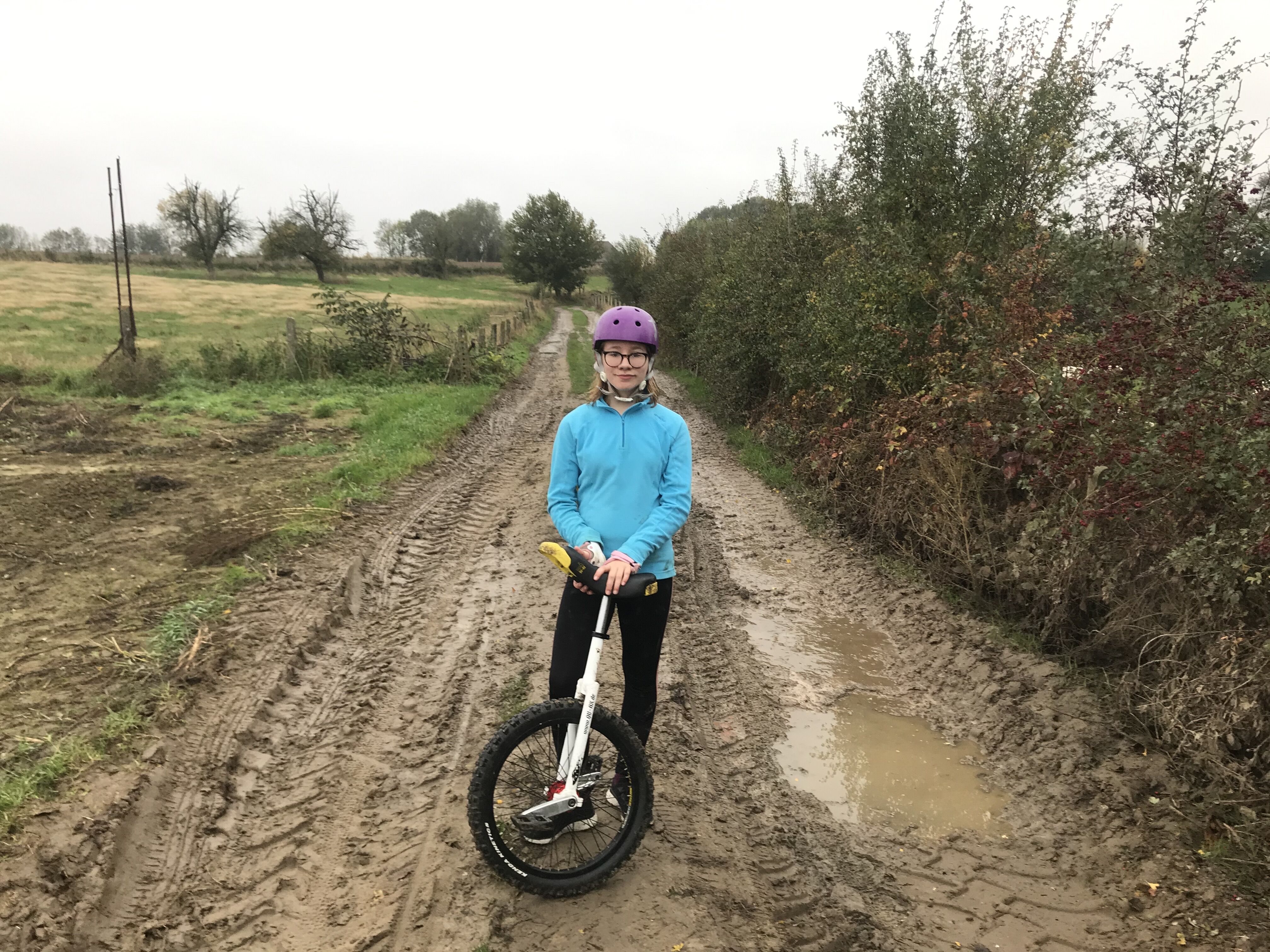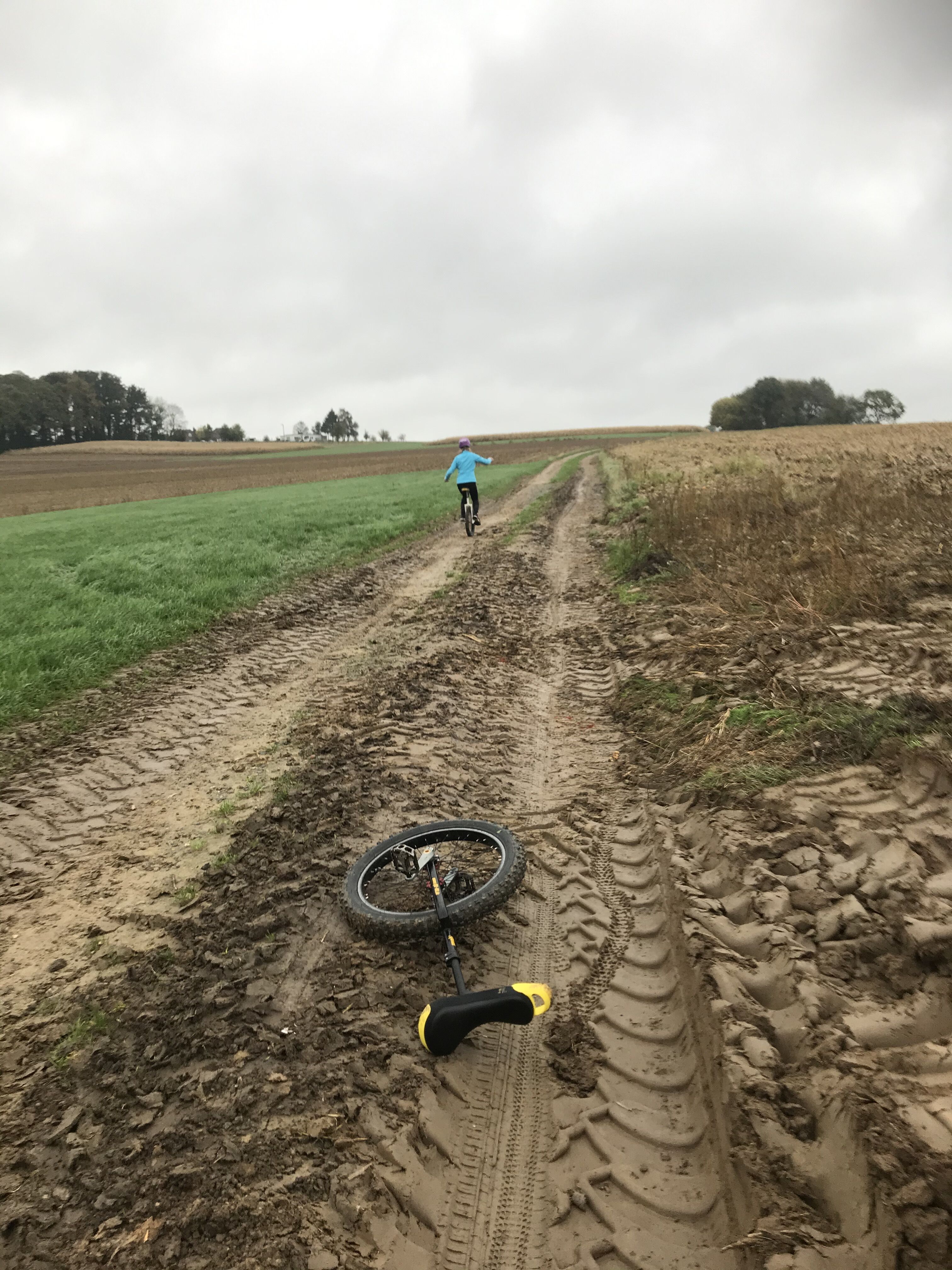 So you ride back after overtaking the kid, UPD on some soft dirt and she just keeps riding…