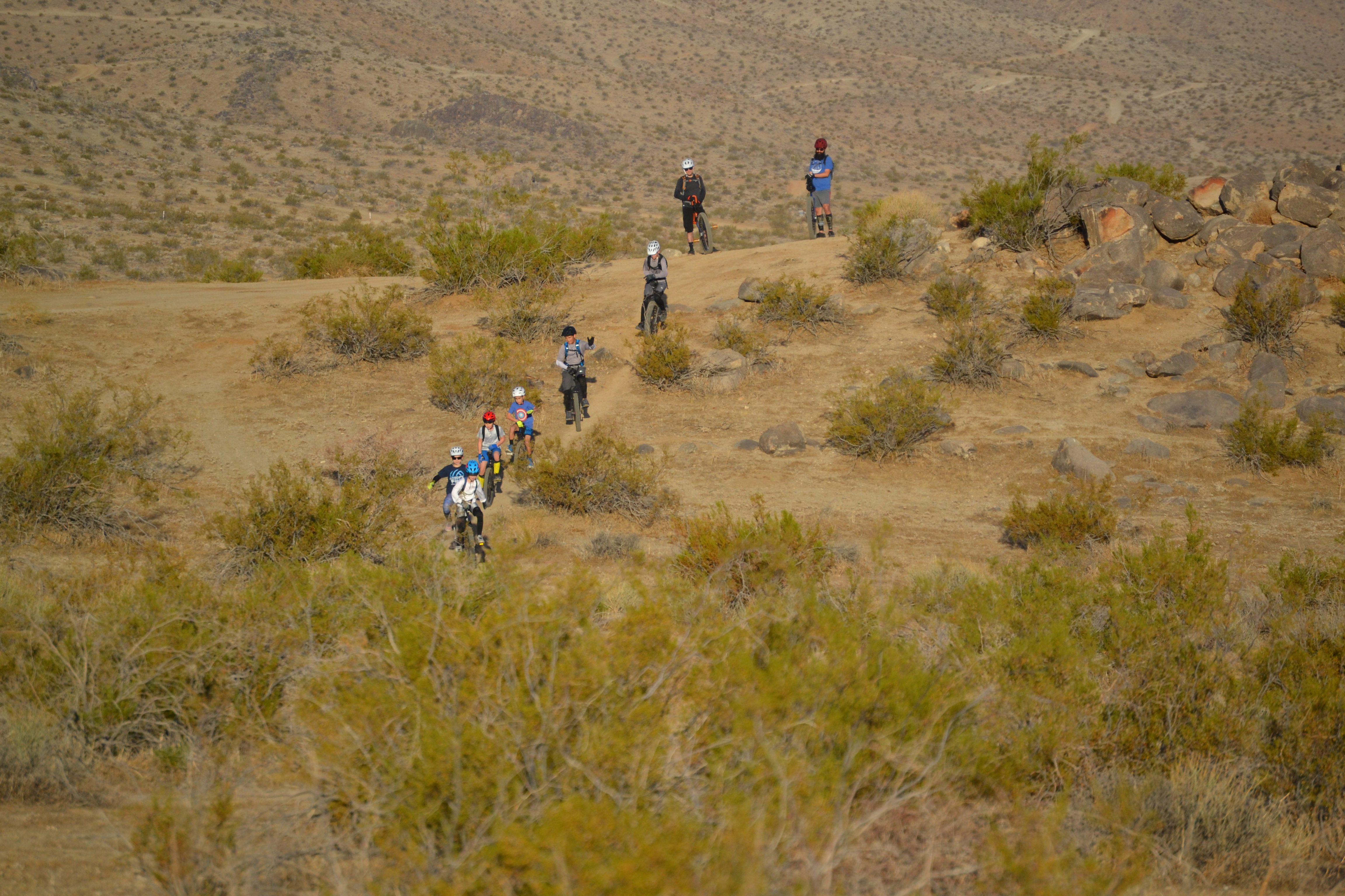 We have small crew in Ridgecrest, CA. Today we had 9 of us: 5 on 24"ers, 1 on a Hatchet, and 3 dads on 29ers.