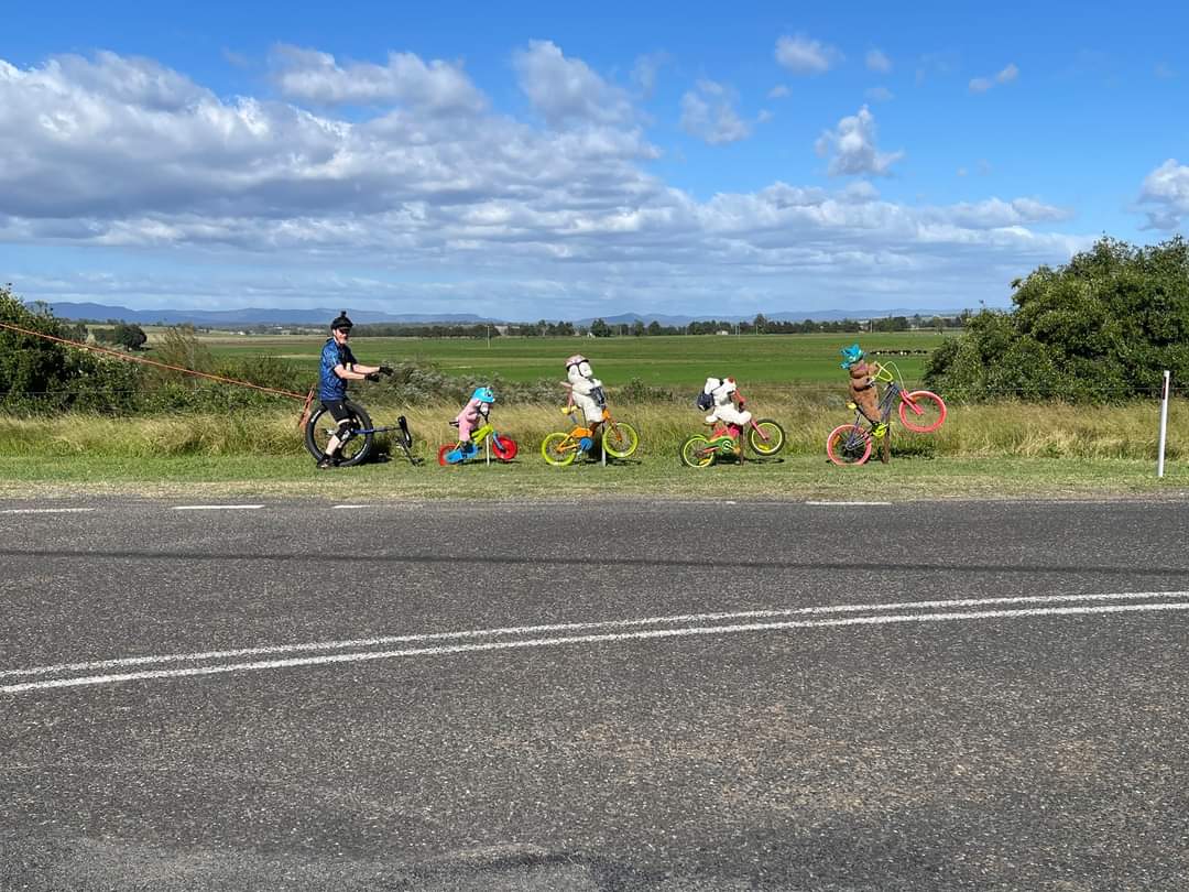 There was one fellow on a bike who called out to me something like “you stole that wheel from the sheila behind us and left her with only one.” A nice variation on the standard quote. All nice bike riders that day, even the pelotons who fly past leaving about a 5cm gap. Not so smart to be that close to a unicycle in a 25+ kph wind.