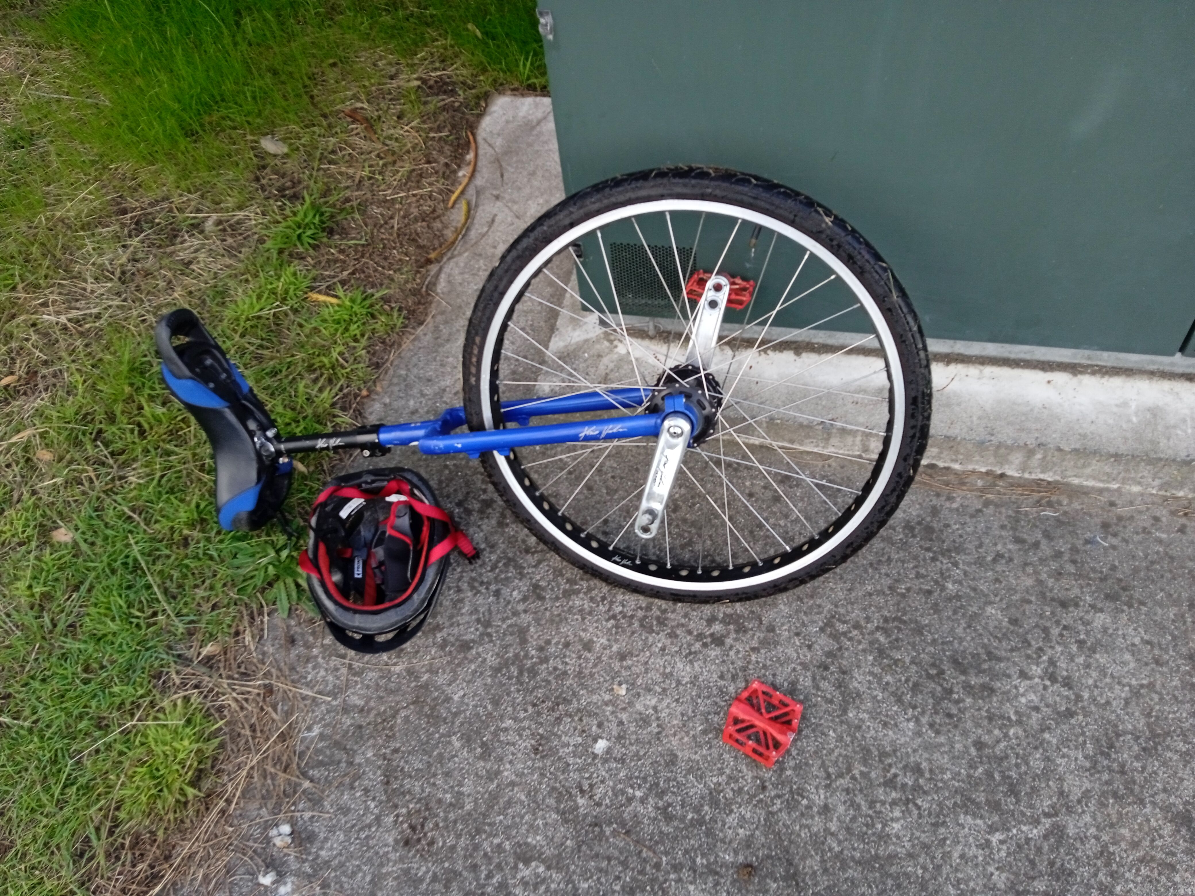 Oh my. Is that a break in the crank? And where did your pedal’s axel run off to?