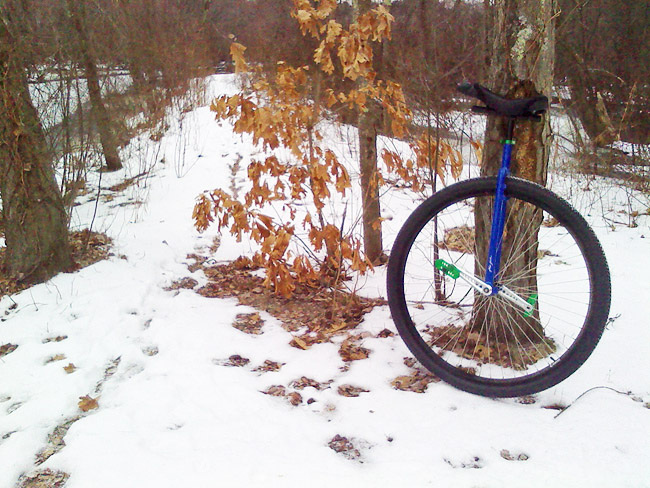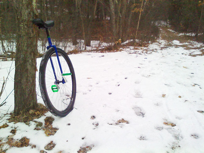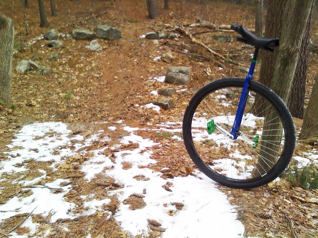 This morning I took my new 36er out for its second ride. Last night I rode about 4 miles around the neighborhood after I finished putting it together. This morning I rode another 4 miles on local roads and took it down some easy off-road trails. Riding the big wheel off-road is a blast!