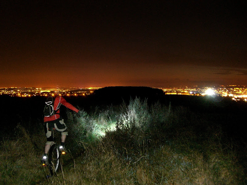 On a night ride last night… this is about 20 minutes from my house on a hill that isn’t particularly big but has an excellent view from it; you can see the lights of half of the West Midlands and when it’s clear over to the Berwyns in Wales and the Long Mynd.
