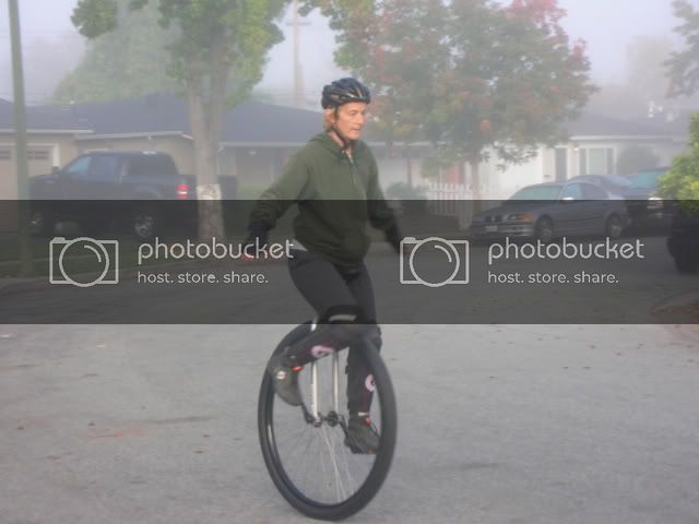This is not a spectacular ride, however, to me it’s a good one. I finally took care of my seat post problems and got the Coker all together last evening. I decided to wait until this morning to ride it since there would be no traffic and less people to watch me and my potential demise. This morning, I took a shower before the attempted ride just in case I ended up at the hospital with major injuries. It’s funny how over the course of a week of getting the Coker useable, I’ve become somewhat paranoid about all the danger of the big wheel. As it turns out, compared to my frightful fantasies it was really quite easy. Of course, I put 170mm cranks on it and now I’m thinking about 150s. I think the 125s that came with it may be pushing it. Anyway, my latest ride was only about 2 miles of flat road, but very fun and with lots of relief that I could do it.