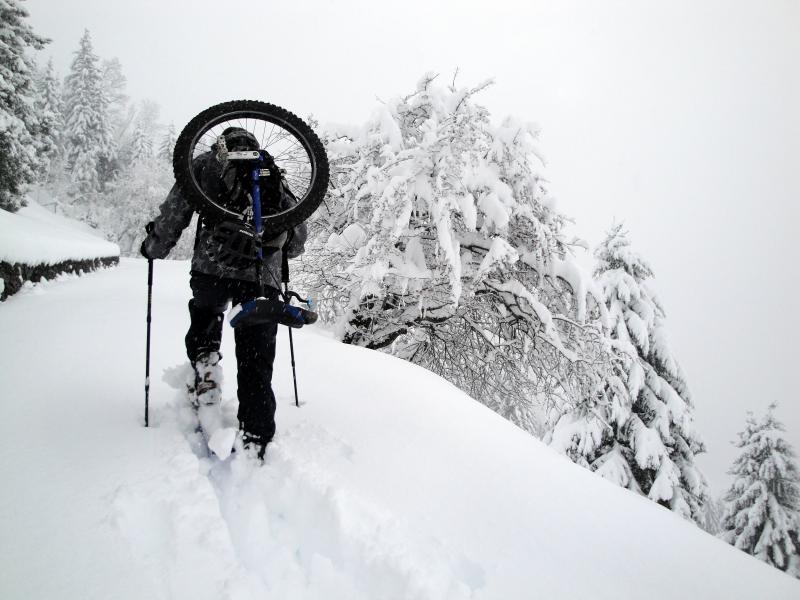 took the 29er on the ski area today, felt like i was on cloud 9, as the riding was perfect. much harder to slow the 29er down on the snow, i usually ride the 24. locking it up and controlled slide down the slope is a challenge, but the best way to slow er down, and a total blast:)
