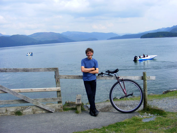 Here’s a picture of me on the ungeared 36er in front of my new home city: