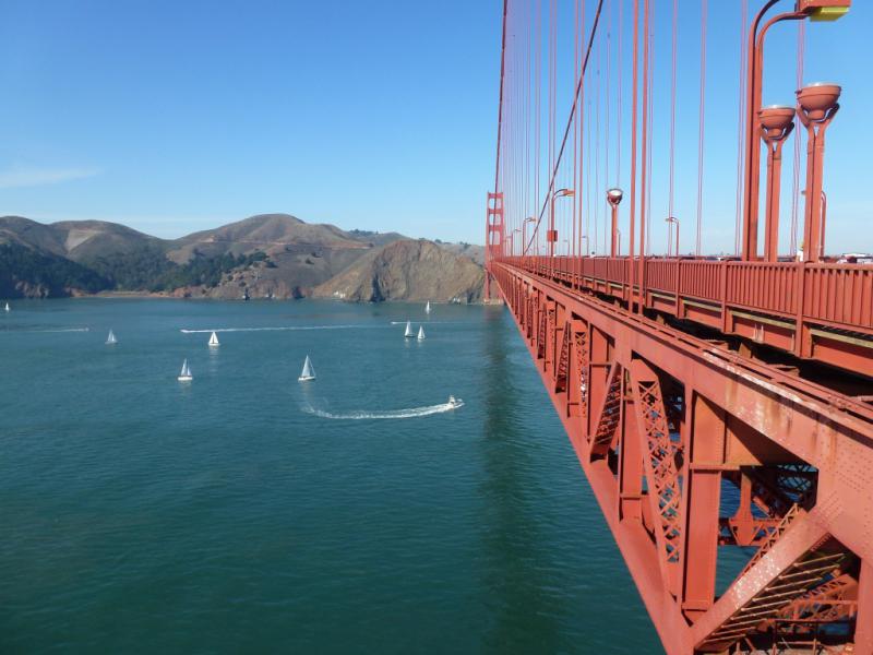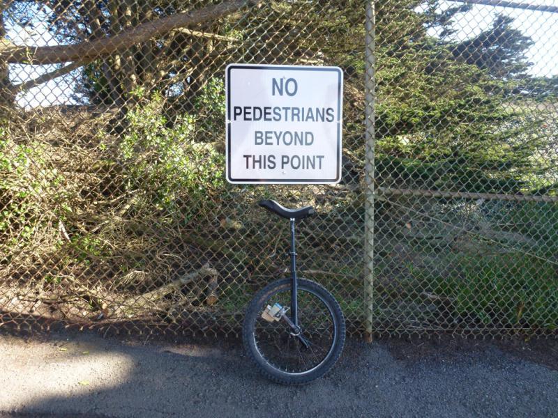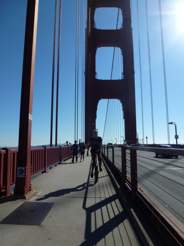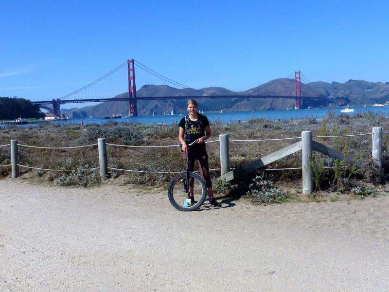 Yesterday I went on a long 4:30h uniride to cross the Golden Gate Bridge. I took BART to Embarcadero and rode from there about 7 miles to the bridge, went over it as far as possible on the ped. side, turned around and rode about half of it again on the cyclists only side. Then I realised that I wouldn’t have enough time for Sonoma eitherway and desided to turn around. Afterwards I walked around Fort Point (my unicycle had to wait at the entrance) before I went all the way back to BART. It was a great day!!!