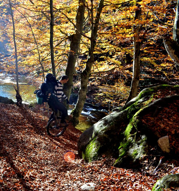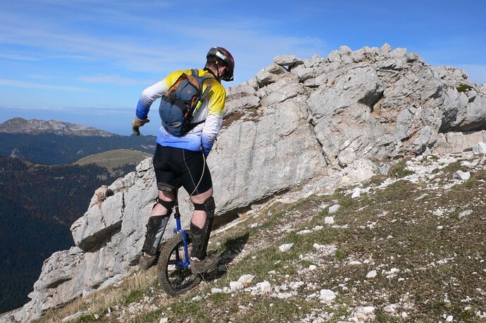 This time I had a small rope between backpack and Unicycle to avoid the Uni lost (and potentially hiker injuries) during the numerous fall…
