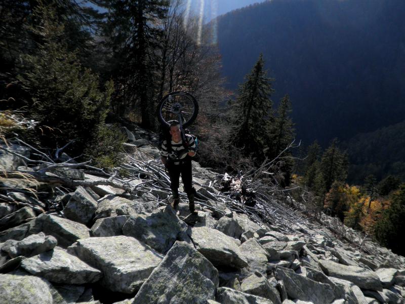 back from a 3 day trip in the italien national parc “val grande”. i hired Tim Shaw from www.piemont-trekking.de as my guide, so i didn’t have to take the four main routes. that means we’ve been all 3 days in the woods and on the mountains or passes, sometimes on old, unknown trails or just a trail. that meant also more hiking then riding, with a backpack on the back with all the gear for the 3 days: food, sleeping bag etc. hard piece of work, especially the uphills also with the uni on the back. also downhill riding, when it was possible was a new experience with the heavy backpack. but the parc and the nature were just great! i’ll come back for sure!