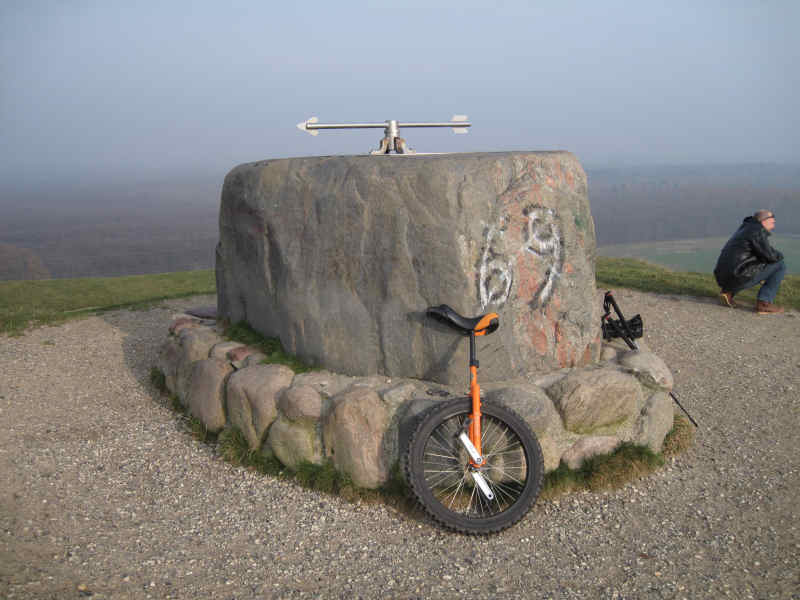 Not sure if there are any mountains at all. But there’s a good chance some Danish unicyclists already accomplished that feat.
