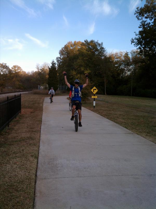Finishing my 100 mile unicycle ride in Cedartown, Georgia along the Silver Comet Rail Trail…