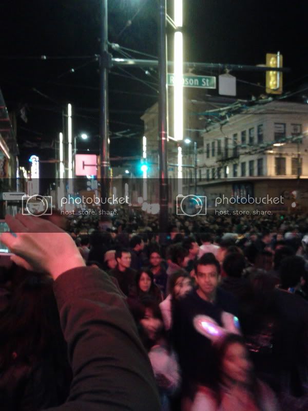 Everyone I know is out of town for new years, so I took a ride down town. There was a pretty good turn out, Granville St. was packed shoulder to shoulder.