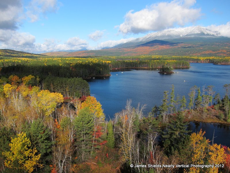 Every year we go to Baxter State Park in Maine for Columbus Day. This is the first year my daughter and I brought our unicycles. Here is Madeline (11) riding on a trail with a fantastic view of Katahdin. On out way out I took a photo of Katahdin from the air. It snowed the night before.