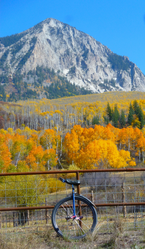 Kebler Pass in Central Colorado- Amazing. Dirt pass except top 2 miles. Climb up was 4,500’, 1372 meters, went down the other side aways towards Crested Butte, then back to top. Then 4,500’ down for total of 6 hours of world class mtn unicycling. Top elevation of Pass is only 10,000’, 3048 meters. Starting temp was -2C, 28F - finishing temp was 10C, 50F. 42 miles, 68 km’s for the day.