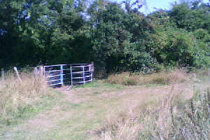 I then join a track that has three of these modern kissing gates. This one has a sharp dip just in front and yesterday was the first time I have ever been able to get to the gate without a dismount. I was at just the right phase of the cycle to allow me to brake by back pedalling.