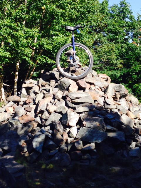 Ive been riding around Bar Harbor on vacation all week and it’s awesome! Very friendly folks from all over, and overwhelmingly positive response to our sport. Part of this ride involved crossing the sand bar that’s exposed at low tide to get to an adjacent island across from Bar Harbor (proper). See Strava link. A short 1 mile trail, but rugged trail to the top has a beautiful exposed rock view of town from across the harbor. Without full knowledge of tides, or how long the sand bar remains exposed, I got back down to bottom of the trail head to see the sand bar covered in water, and quickly rising. Just made it back across with a salt water ride to get back to land. Yes, I rinsed with fresh afterward.. After arriving back safe, I asked locals how often do people get stuck on the island, and the answer was too often to count. Many places to explore, and highly recommended destination for unicyclists, and slow car traffic everywhere!