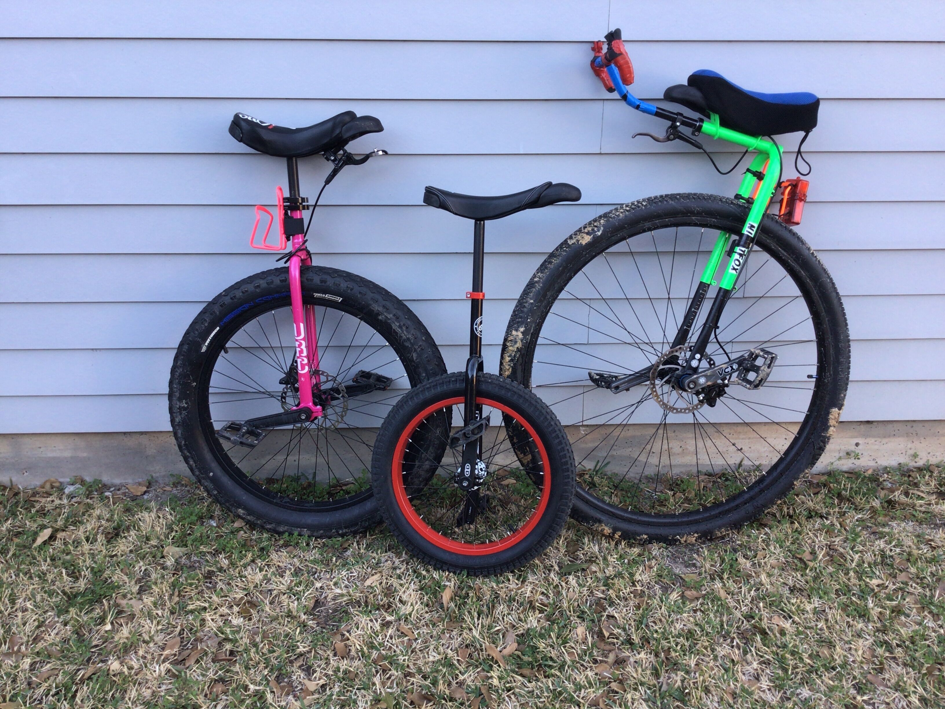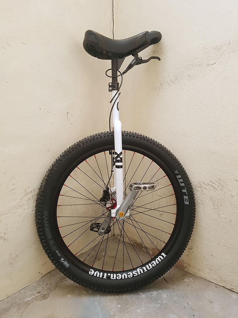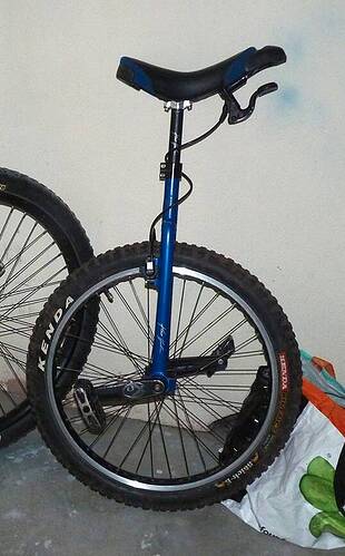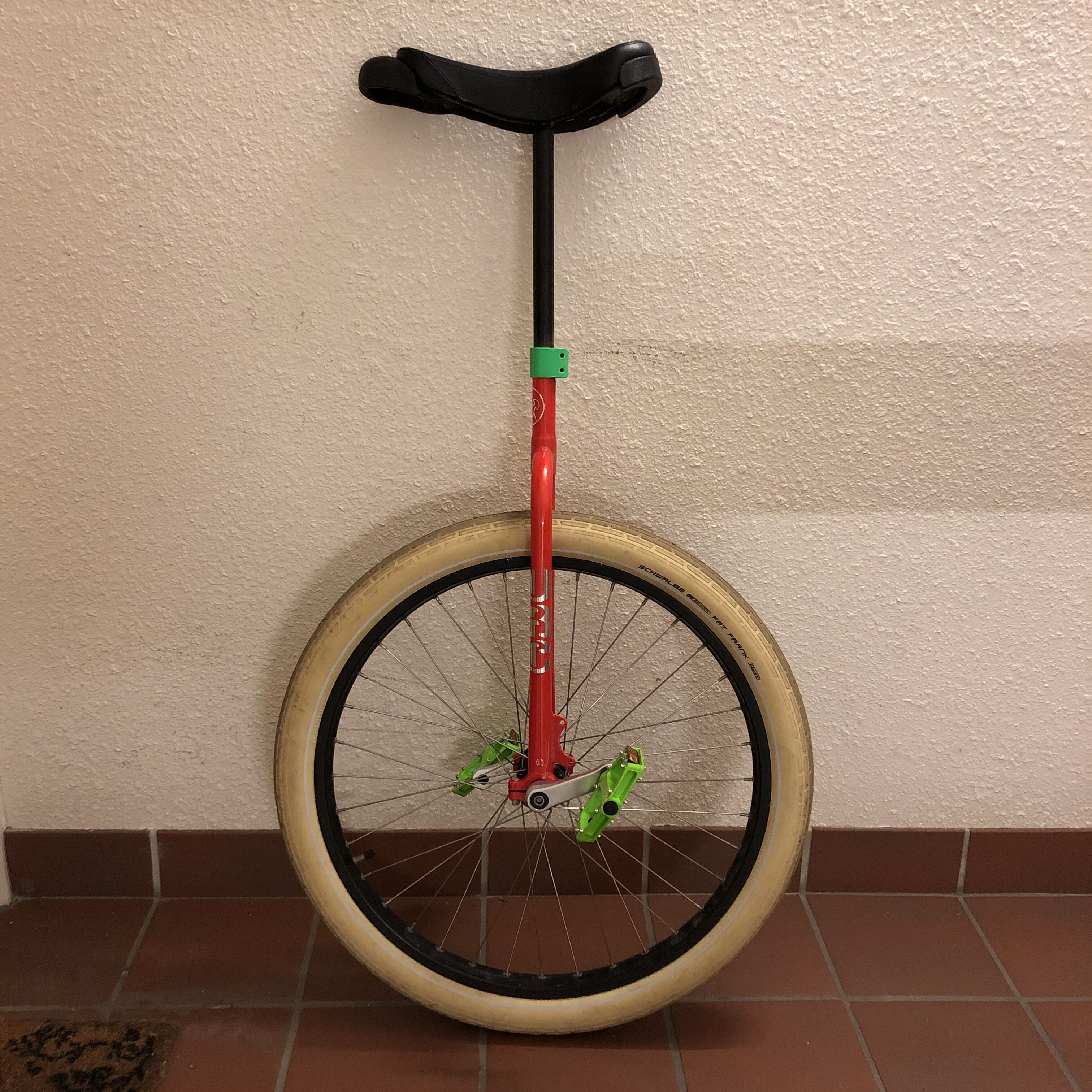 I have seen threads like this in the past but nothing recent. Take a picture of one (or more!) of your currently used unicycles and post a picture, so we can see the range of what unicycles look like these days. Maybe talk a little bit about the parts. I can start.