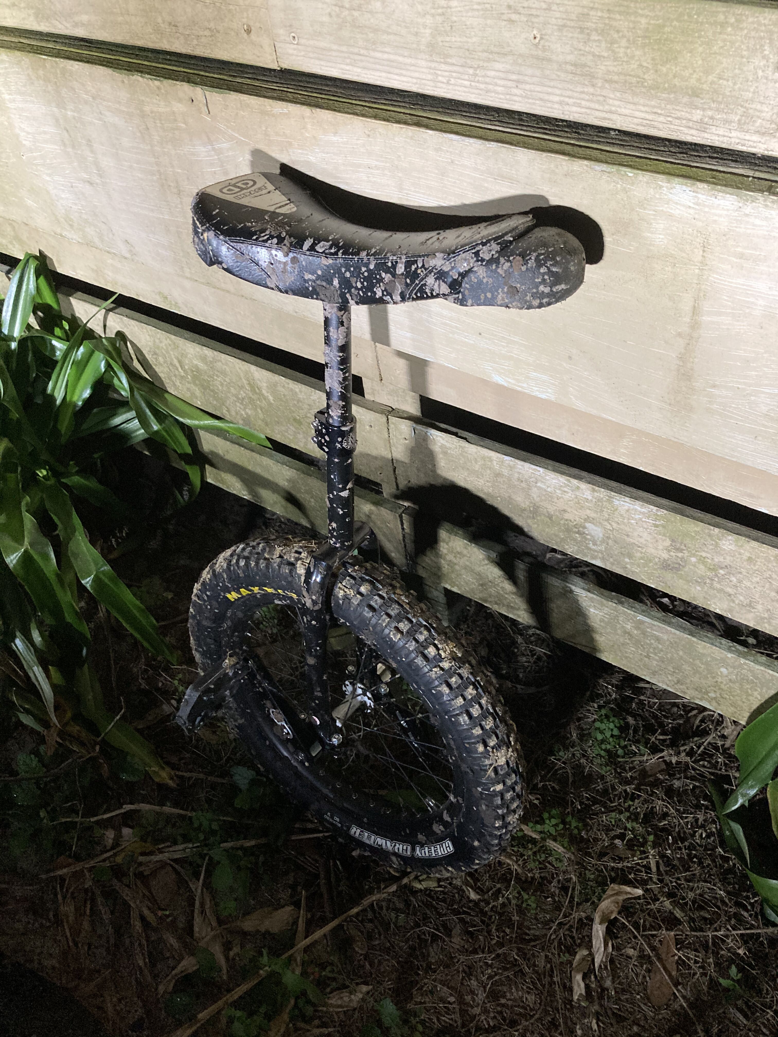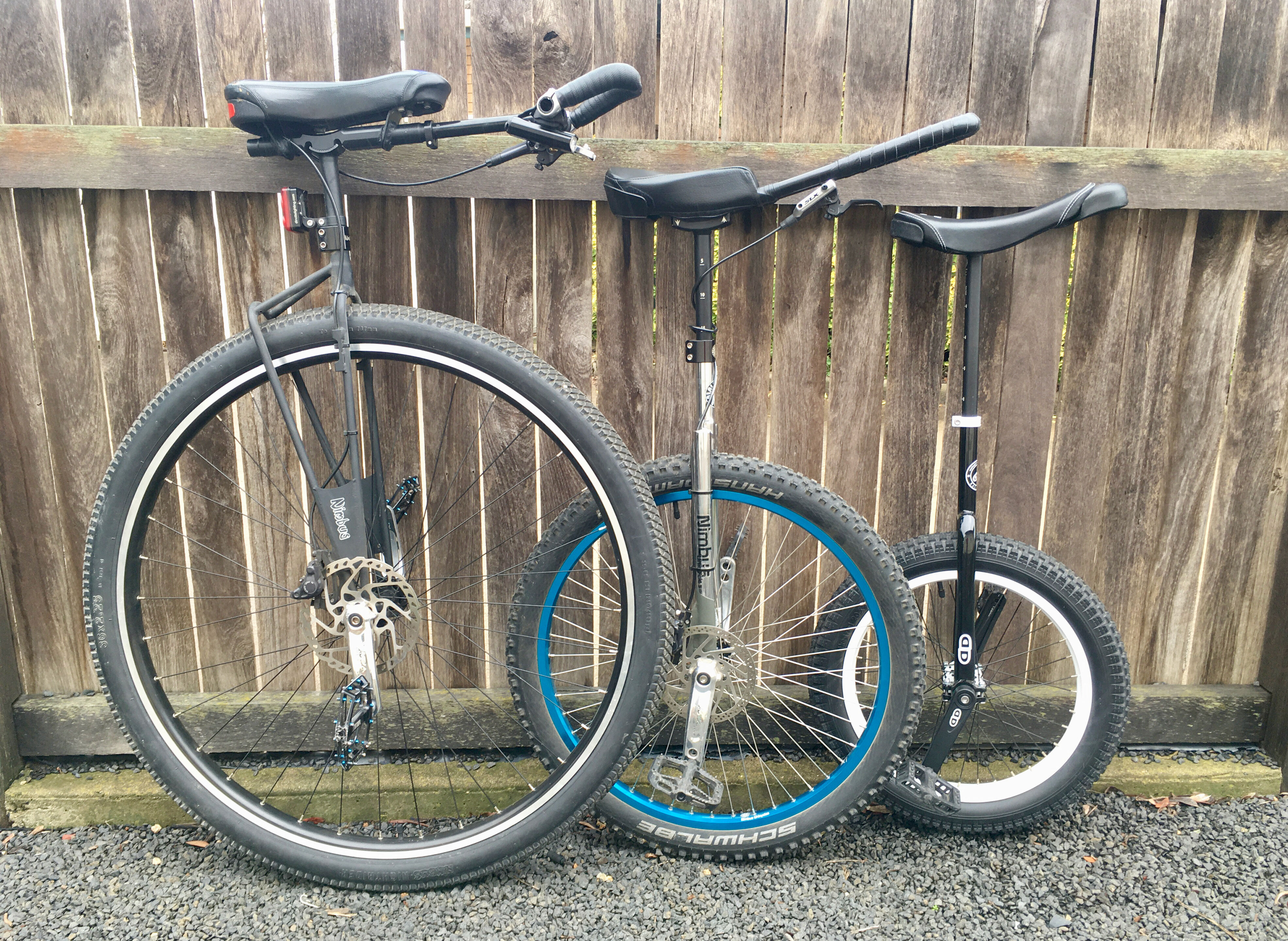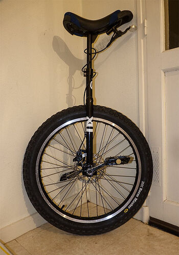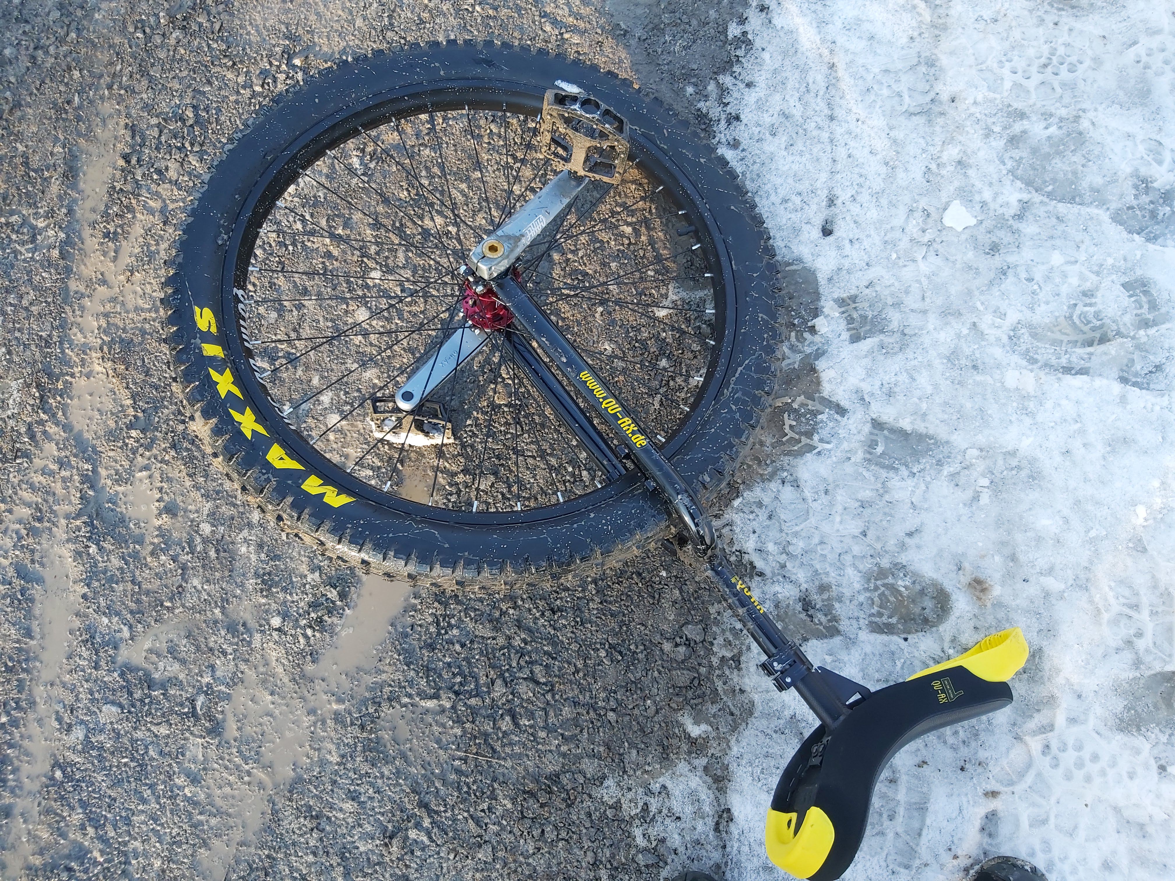 I have seen threads like this in the past but nothing recent. Take a picture of one (or more!) of your currently used unicycles and post a picture, so we can see the range of what unicycles look like these days. Maybe talk a little bit about the parts. I can start.