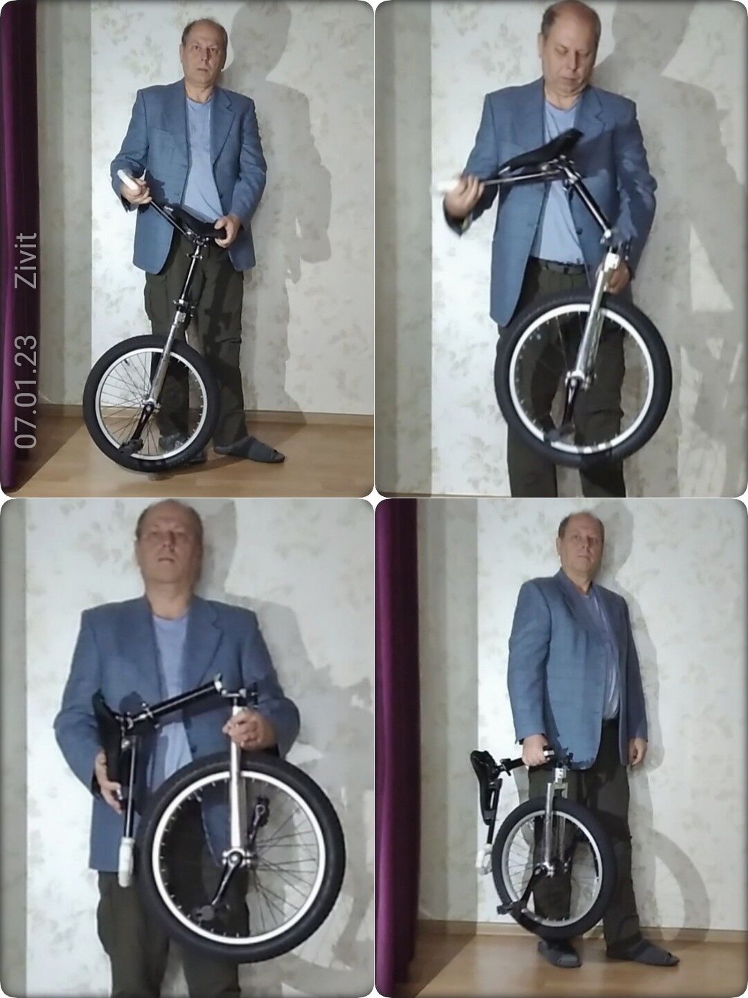 I made it, at last, my oldes dream, the foldable unicycle. Probably, it is the first folding unicycle in the world. In this case, lets to think the publicasion fixing the priority ![]()