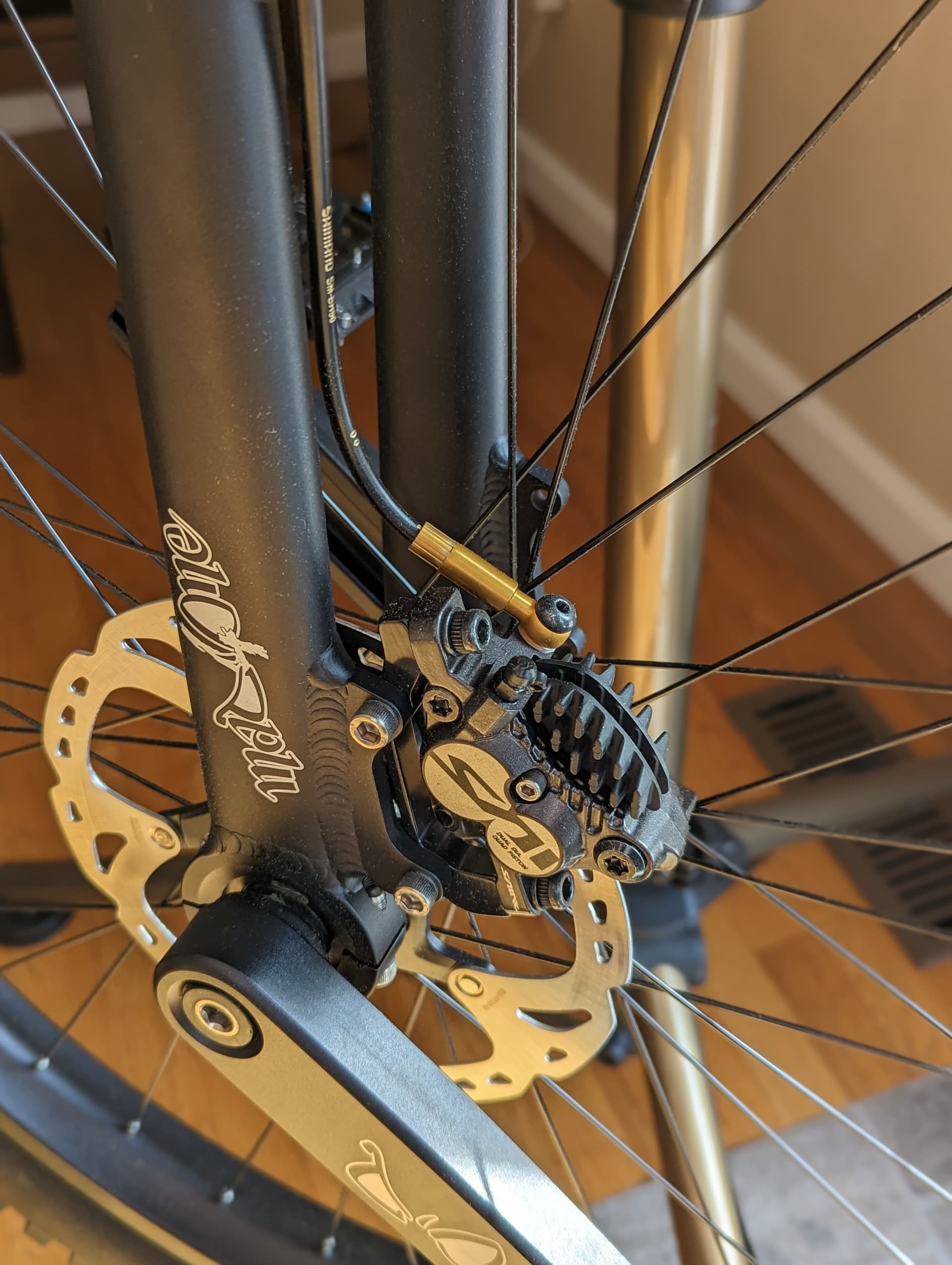 - I went for all black components (all black carbon fiber rim + nipples + spokes is being built this week; the image above has the stock rim that came from Mad4One)