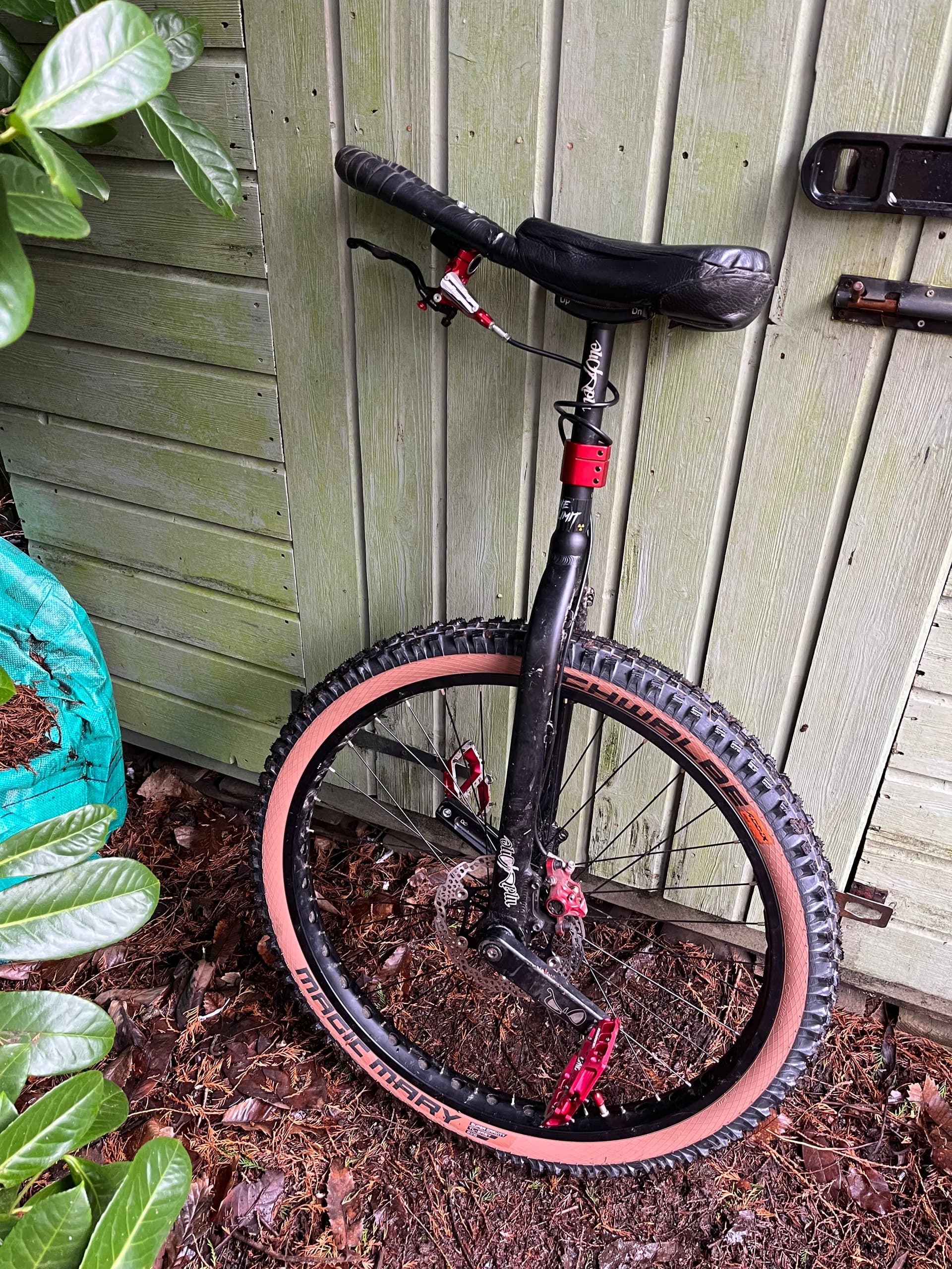 Just updated my Muni with the new Christmas gear I got; tan Magic Mary tyre and Nukeproof Horizon Pro Sam Hill pedals. Looking forward to hitting a few downhill trails tomorrow to try them out!
