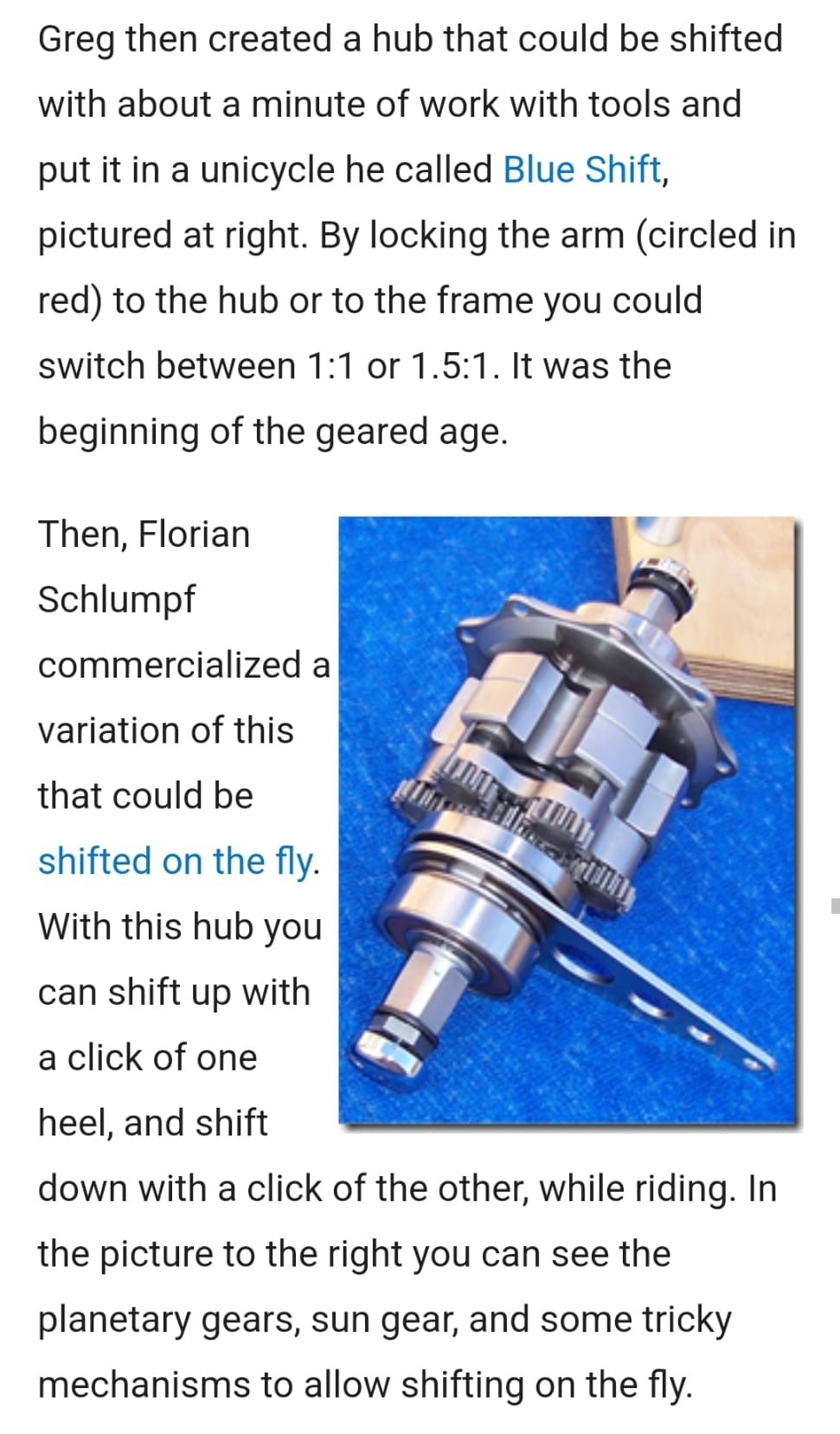 The picture is of a proper Schlumpf hub. The other can be seen here: Riding Faster on One Wheel: Geared Unicycles | Random ASCII ā tech blog of Bruce Dawson