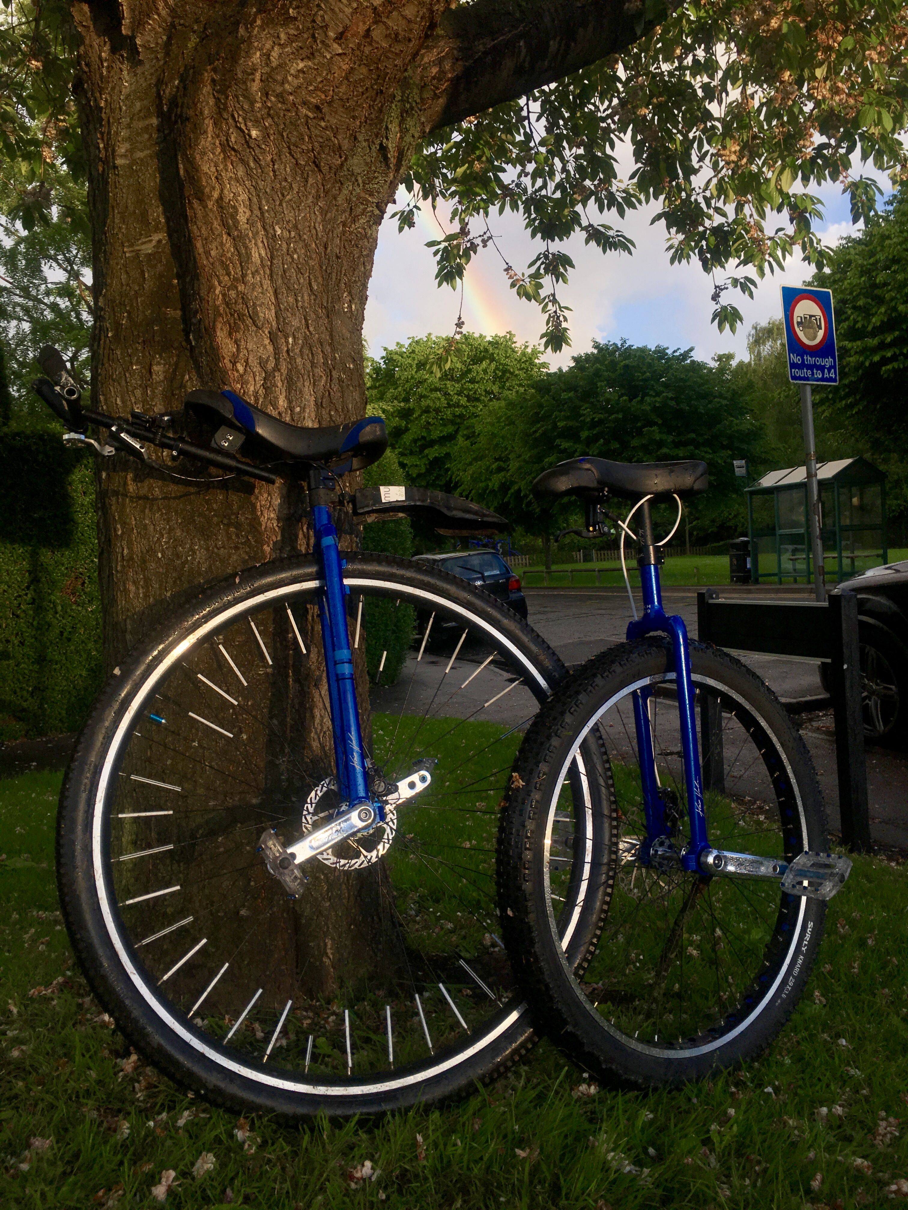 This is how it looks outside my apartment right now. The smallest is my daughter’s new uni. Thanks to @Thewheeliekid for reminding me how nice those pink URC frames are and also @UniMyra for inspiring me to match it with a nice tyre.