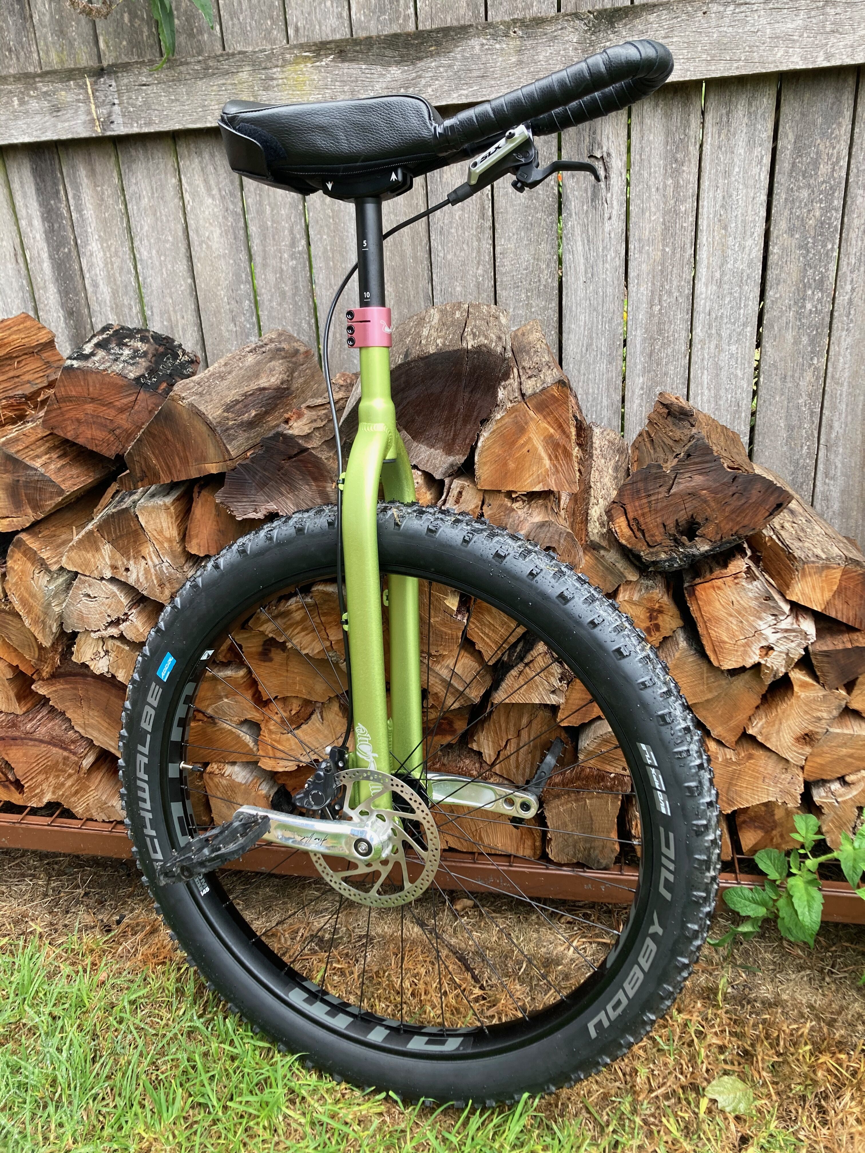 It will still be a little while before I can test this thing out properly, but just experimenting in my backyard I’m chuffed with how nice it rides. The only real difference compared to my old muni is the wider rim and tyre, but it is significantly easier to mount and ride on grass and gravel. It feels much more stable too.