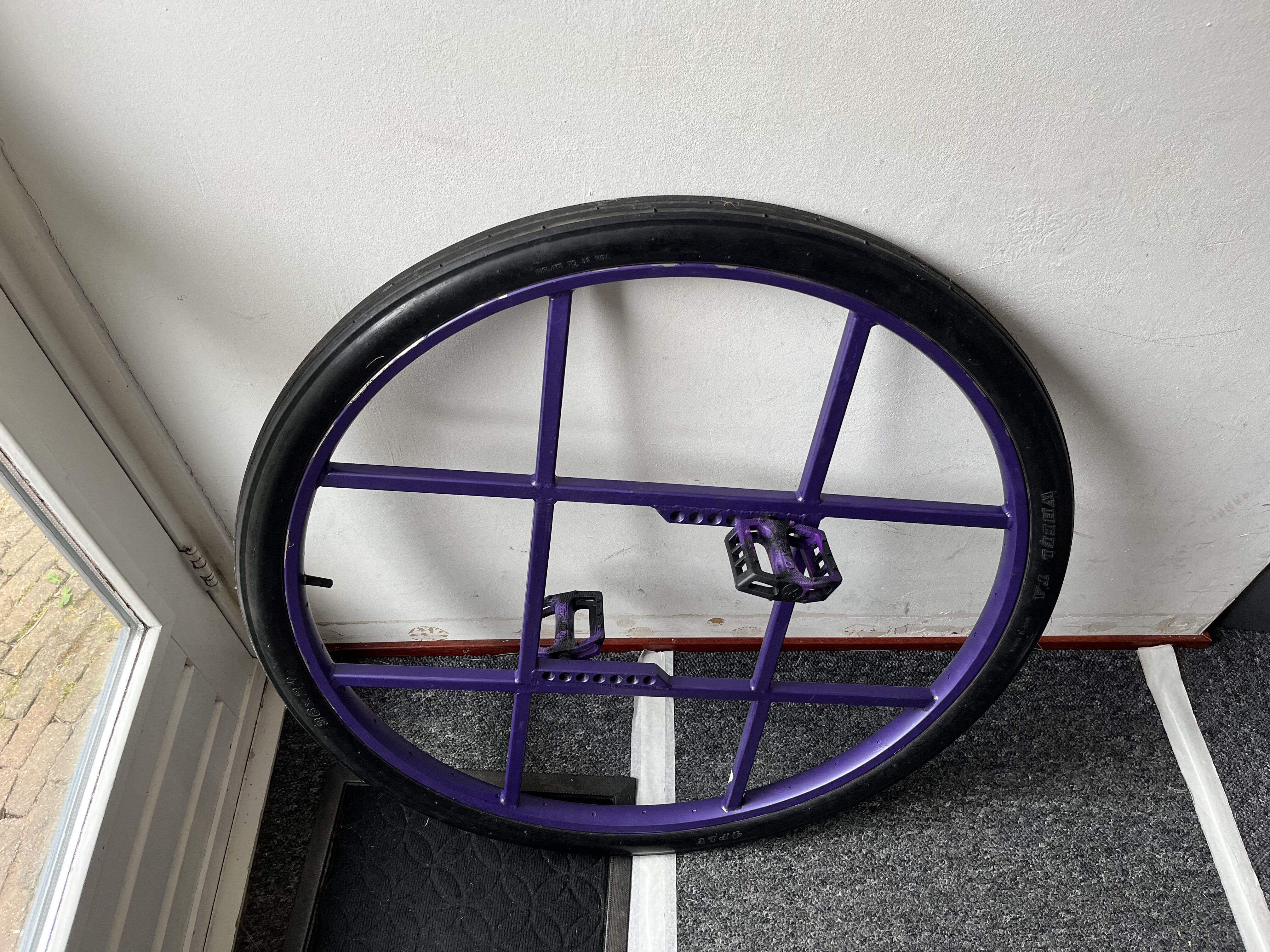 The new Ultimate Wheel is what it should be now: dark purple metallic frame and pedals that are in style with it. With a bit of practise I will soon be flying around in town. Im very grateful that @Ulkicycling has built it.
