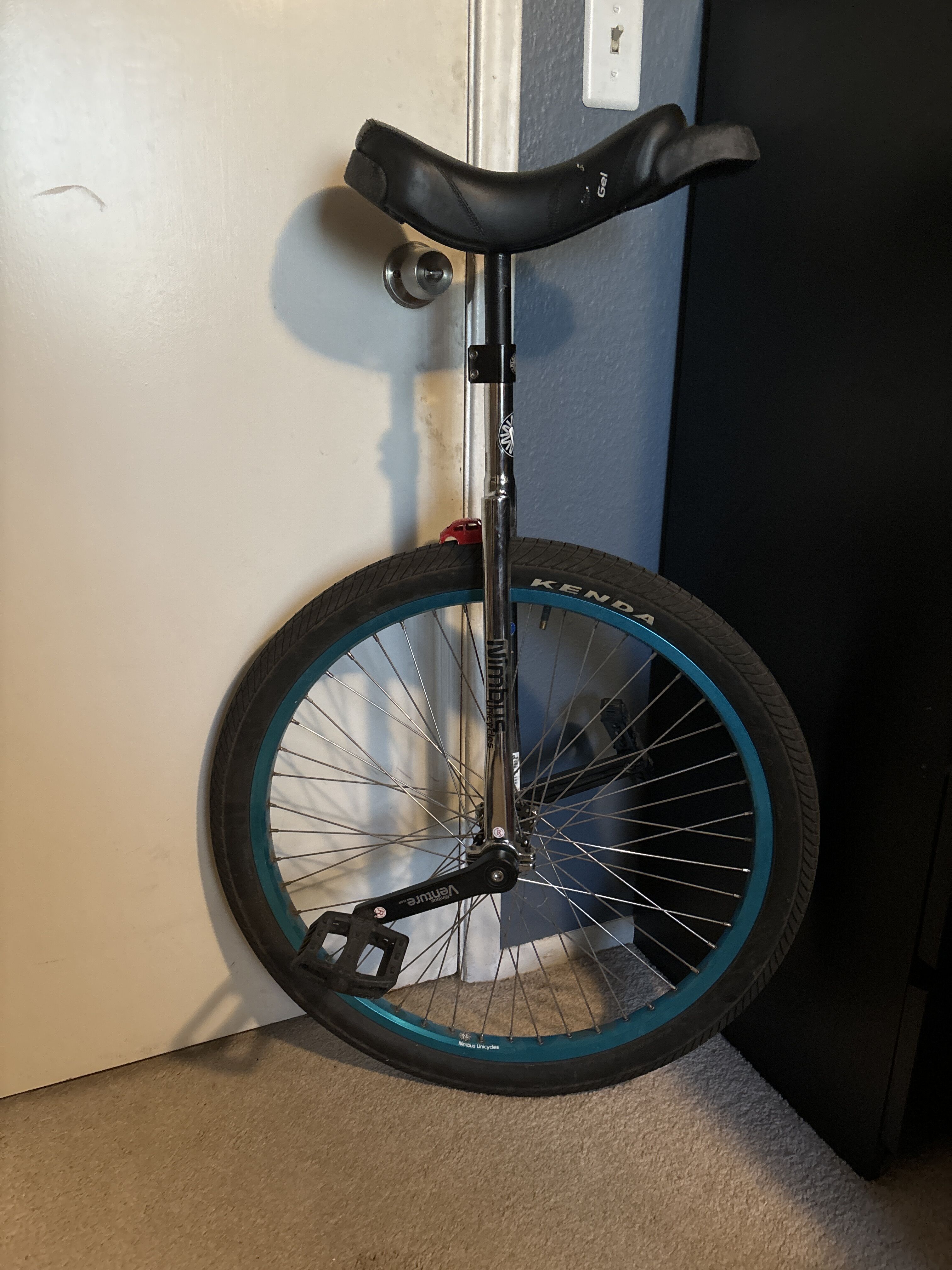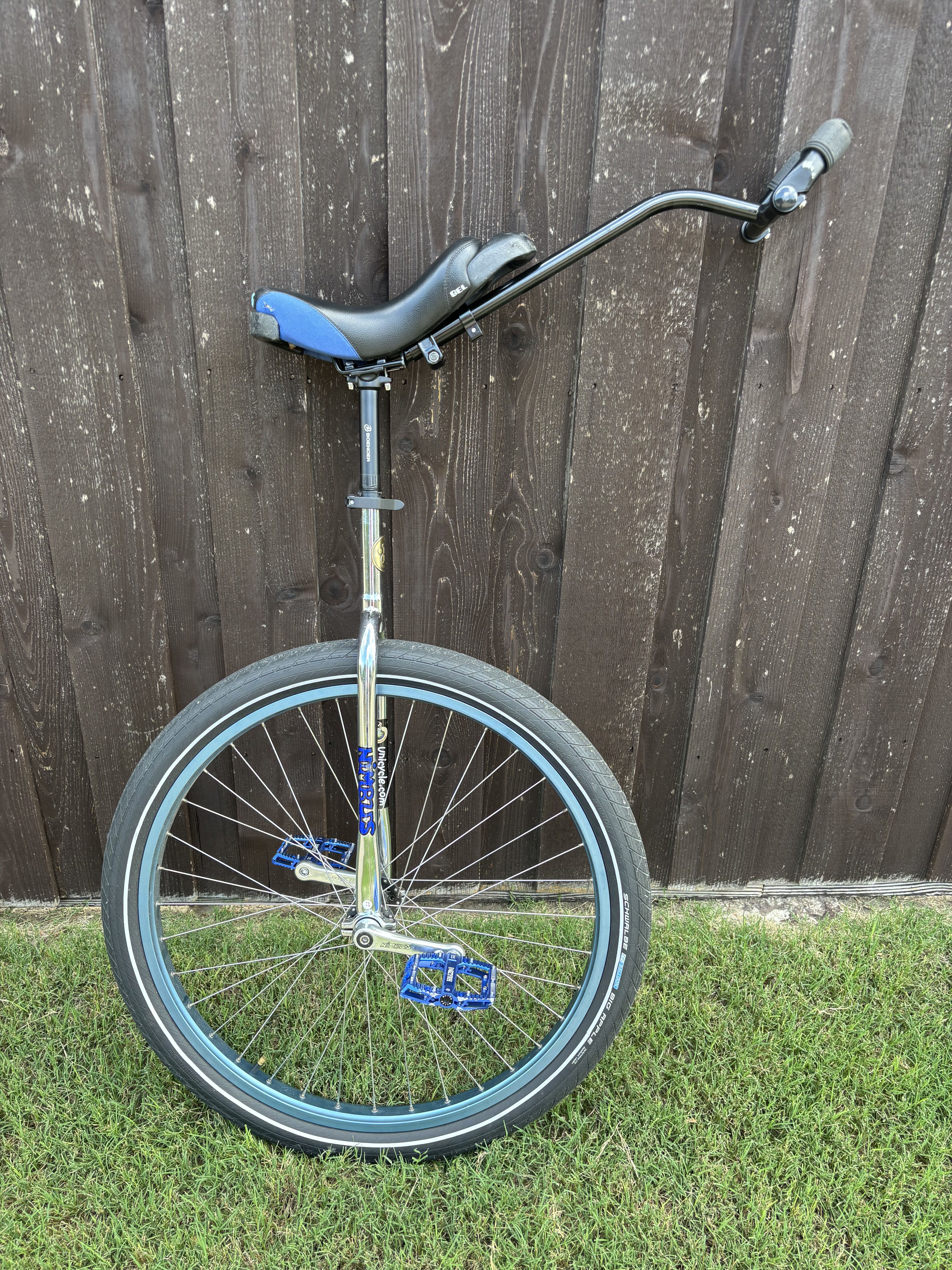 So this is my second 20" unicycle that I’ve gotten, both of them were bought used. The Nimbus, however, is likely a significant upgrade from the CyclePro 48 spokes, square taper cotterless hub, QU-AX branded 114mm cranks, and a 25.4mm seatpost as well. Anyone have a guess at what specific model this is? I’m not too familiar with older unicycles. From what I can gather from the forum it’s probably a Nimbus freestyle-type uni.
