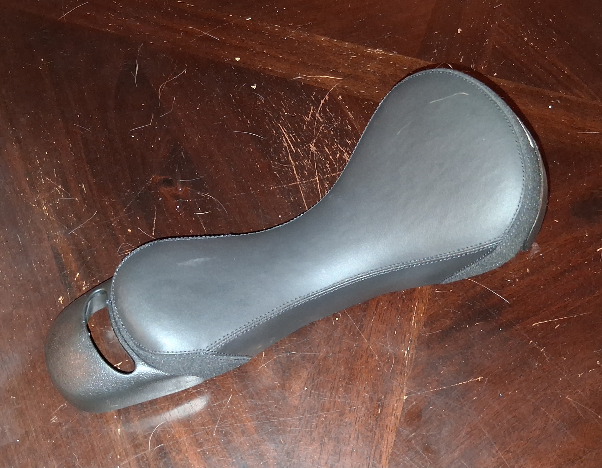 I’m sure it’s an older Nimbus saddle base. It’s got too much curvature for me so I pretty much immediately swapped a newer, flatter Nimbus Stadium saddle onto it.