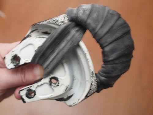 When you get to the end of the handle, rather than looping back down over the front of the handle send it to the back. Hold this tight while bolting the handle back onto the saddle, which will hold everything in place. You can then trim any extra bit that might be sticking out from under the handle.