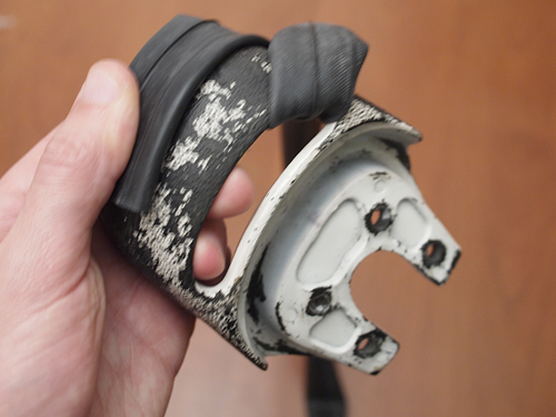It’s wrapped with an old tube. I do this on all my handles and really like how it feels when gripping them. This is why I was a bit bummed about the new 2011 KH handle design without the hole; I guess I’ll have to buy a few spares while I still can.