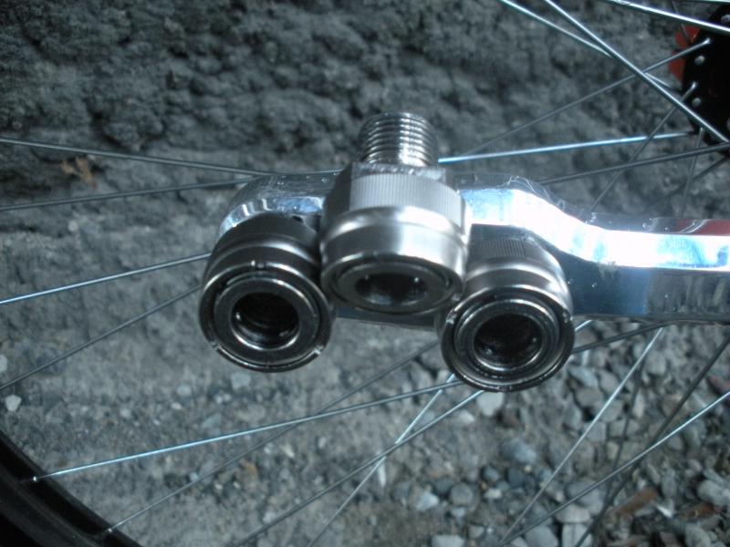 I bought a pair of Davinci Designs 3 hole cranks. The pedal holes are at 130mm, 150mm, and 170mm. I was initially a little leary about how well the aluminum crank could take cycles of pedal changes. Dave Elliot had nothing but good to say about the Davinci Design cranks he had on his Coker so I called the owner and he was very well aware of the composition and properties of his product, and it put my mind at ease because they are $195.00ā¦which is more than a candy bar.