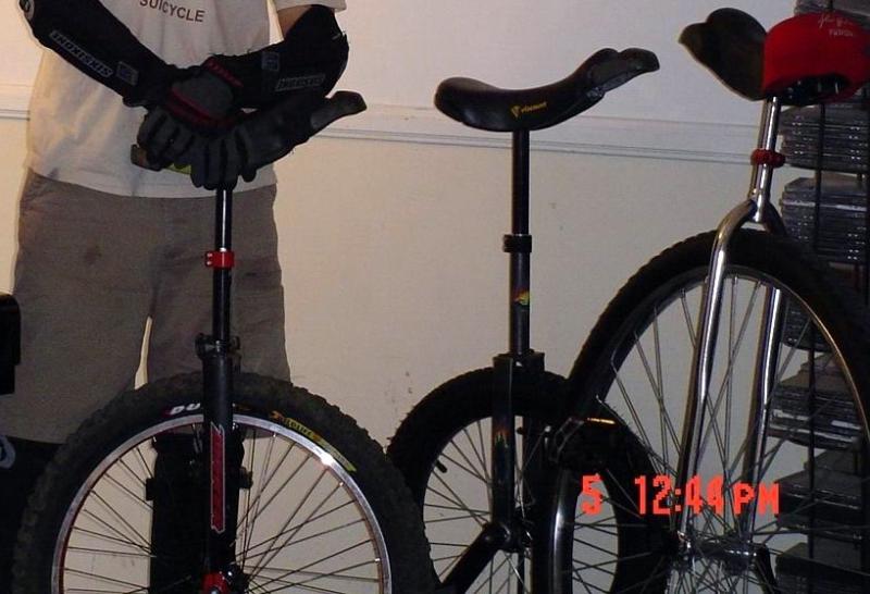 Uni technology has sure improved since 2006! On the right was my first 36er, with single walled steel rim. The other two are 24" torker DX and Summit trials.