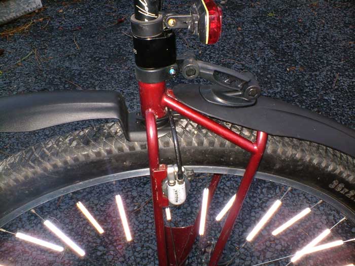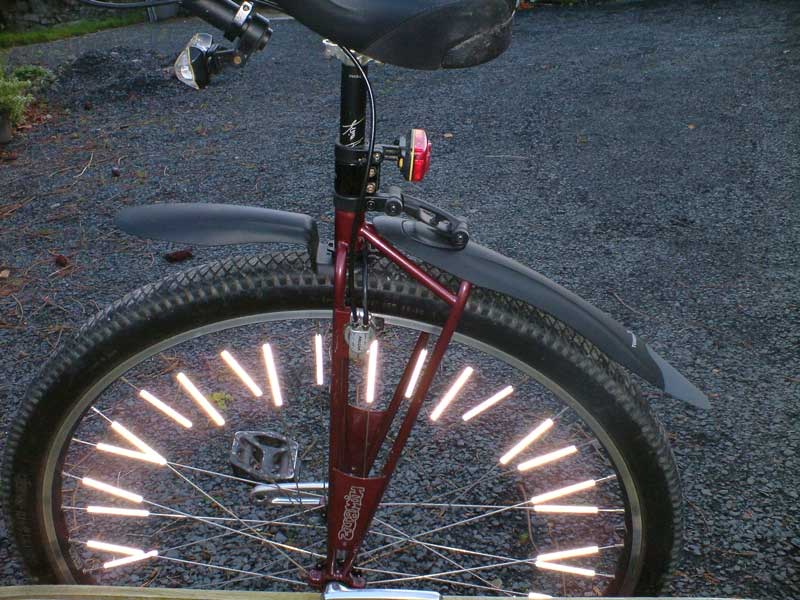 The spoke reflectors have been highlighted in the camera flash