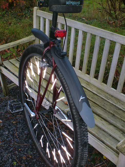 The front bit is held on by the normal adapter fitting into the seat stem and I used a shim to get it tight. It comes with a click-in lock and appears to work well. The front and rear sections overlap slightly so it should keep water off me - and more importantly drenching the seat - for a good proportion of the wheelâs rotation - we shall see.