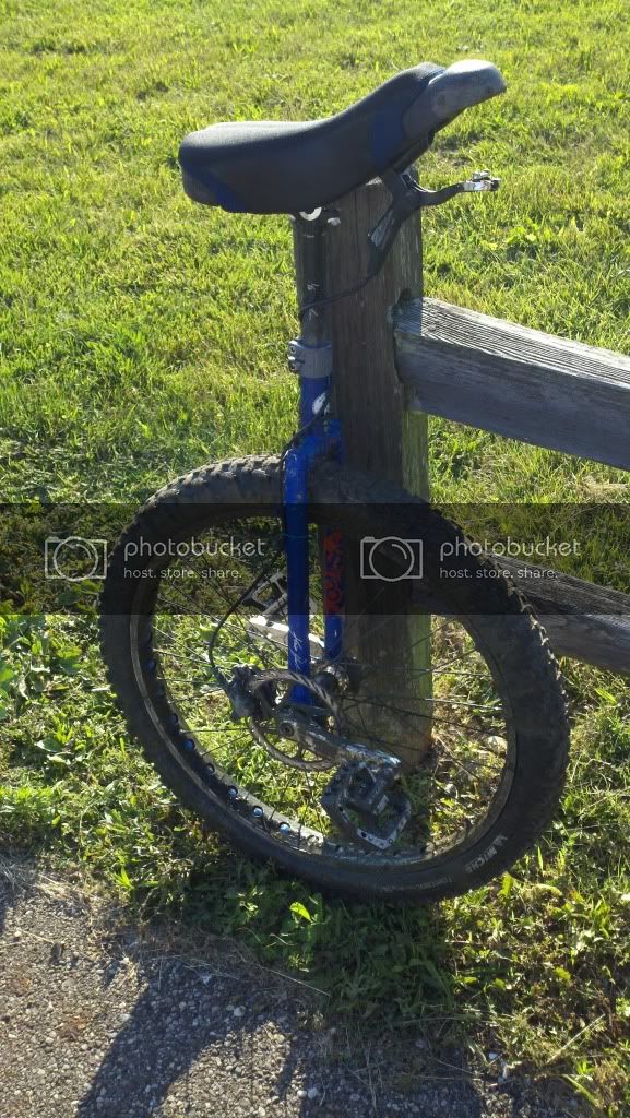 I got a new wheel for my freewheel unicycle. I didn’t build this myself so it’s much truer and should work better with a rim brake. It came with 100mm cranks (vs. the 125mm I’ve been using) and I’m finding them slightly harder to balance (and especially mount) but much smoother to pedal. Any hitch in pedaling a freewheel unicycle can result in a UPD.
